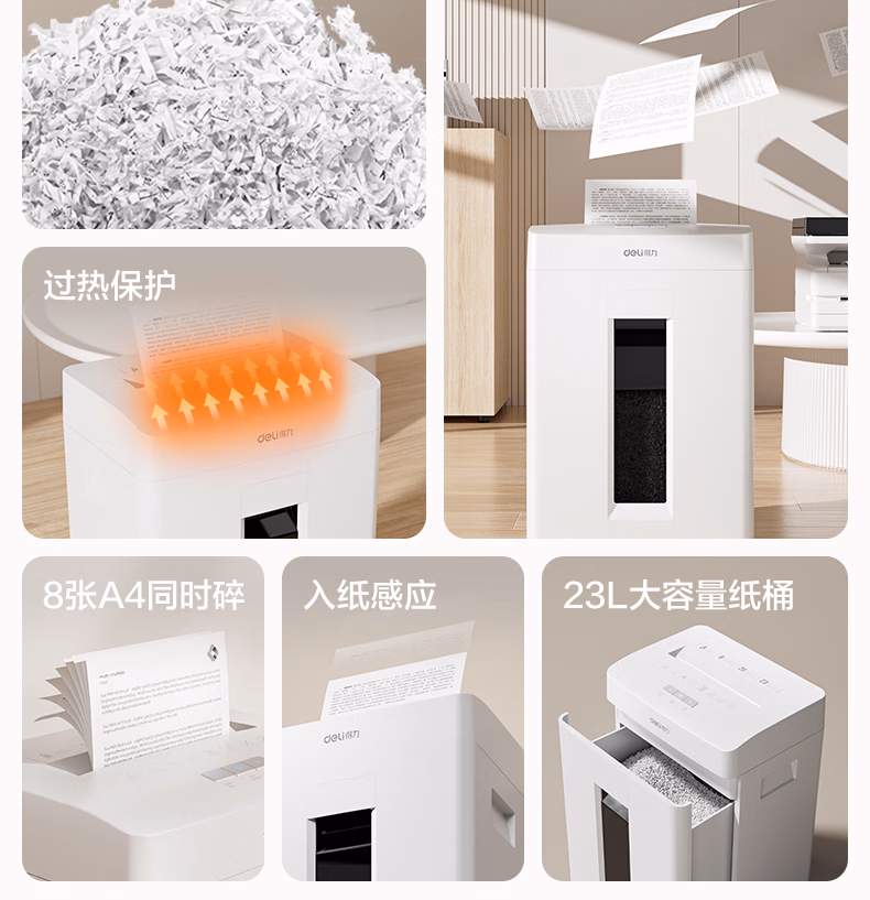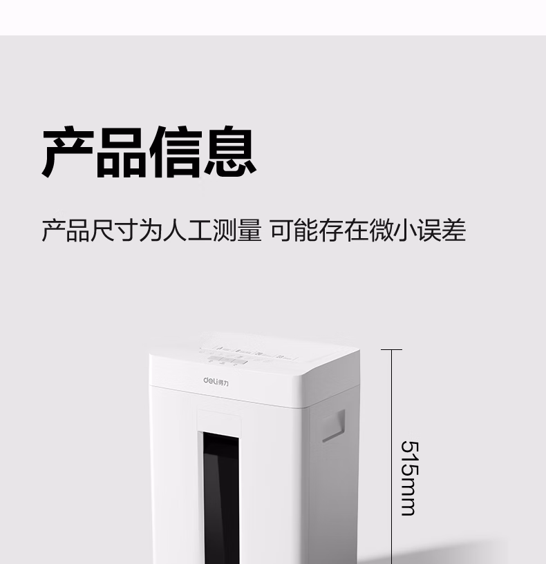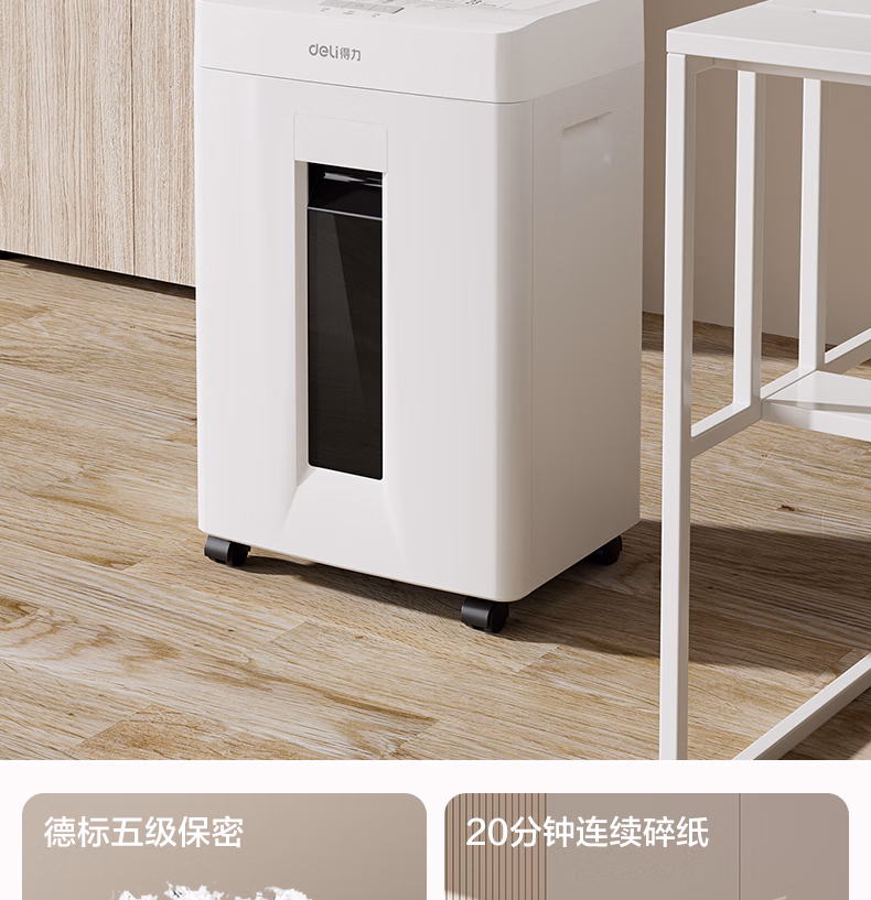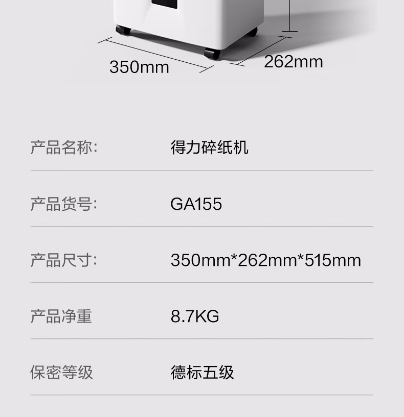 包装清单  :   得力碎纸机 5级高保密商务办公大型家用办公室文件粉碎机 单次8张 连碎20分钟 23L GA155
