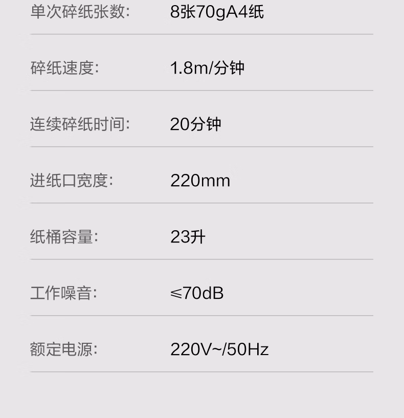 碎纸宽度(mm)  :   210