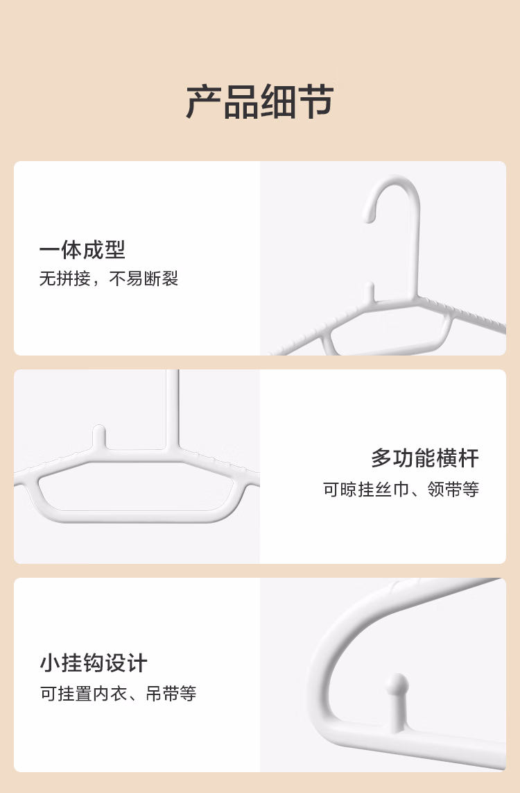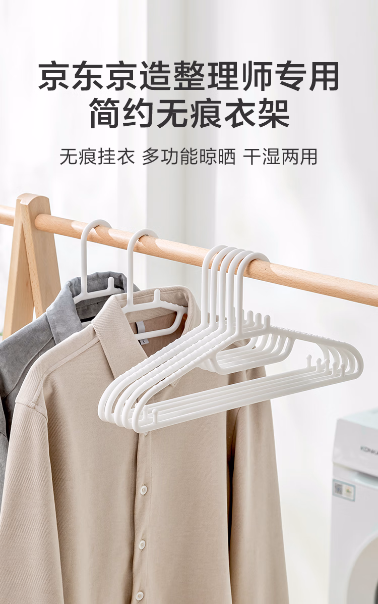 包装清单  :   京东京造 衣架无痕晾衣架子塑料衣挂干湿两用衣撑防滑衣架学生宿舍10个灰