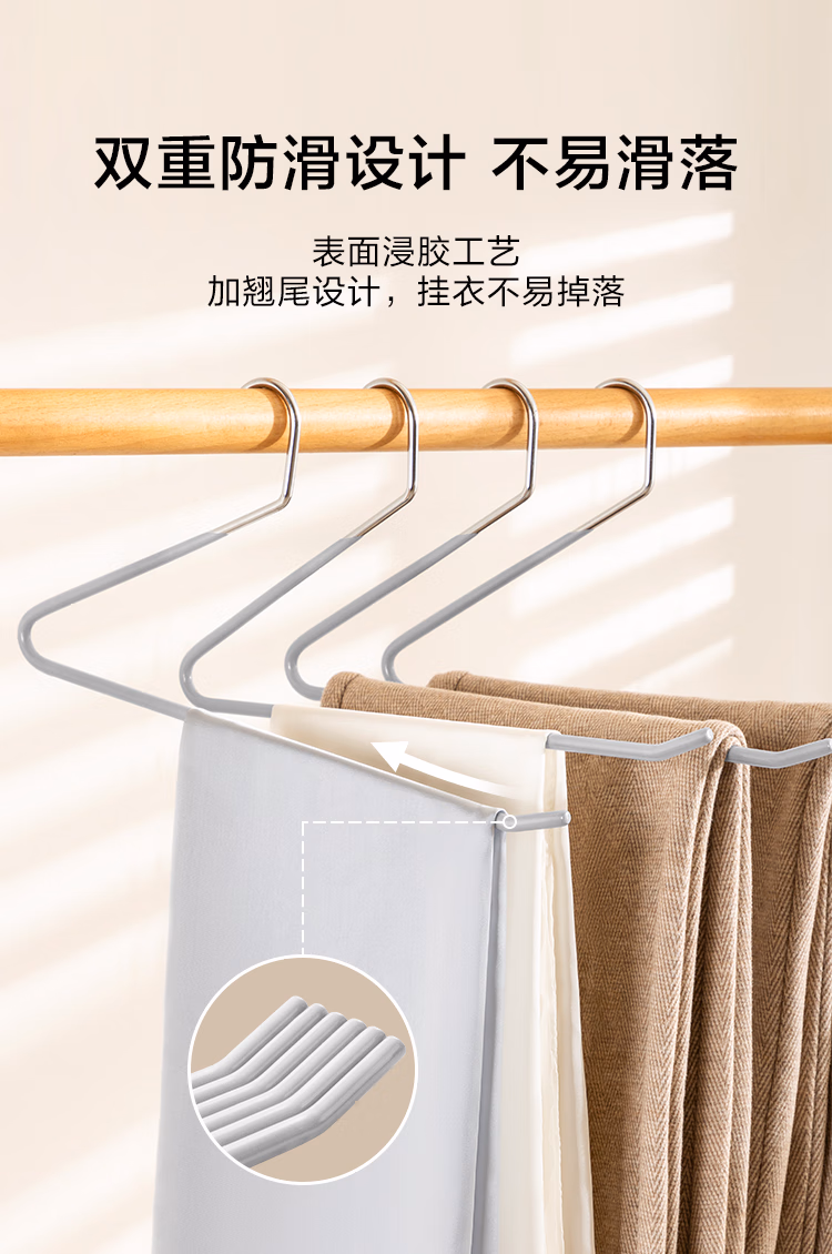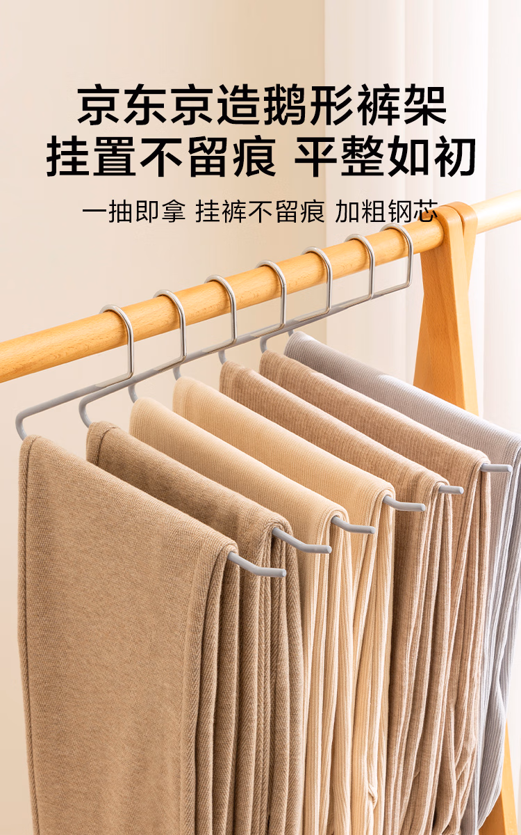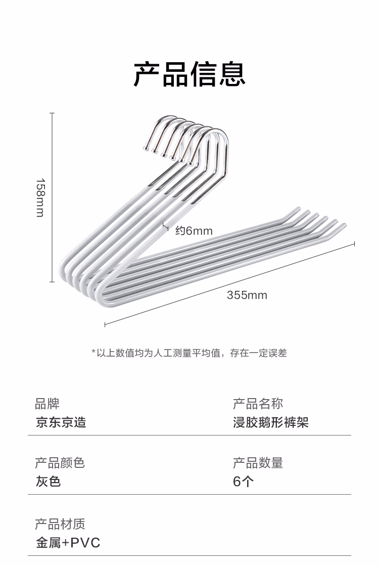 包装清单  :   京东京造浸胶鹅型裤架子防滑无痕裤子衣架挂裤子收纳衣架 6个灰