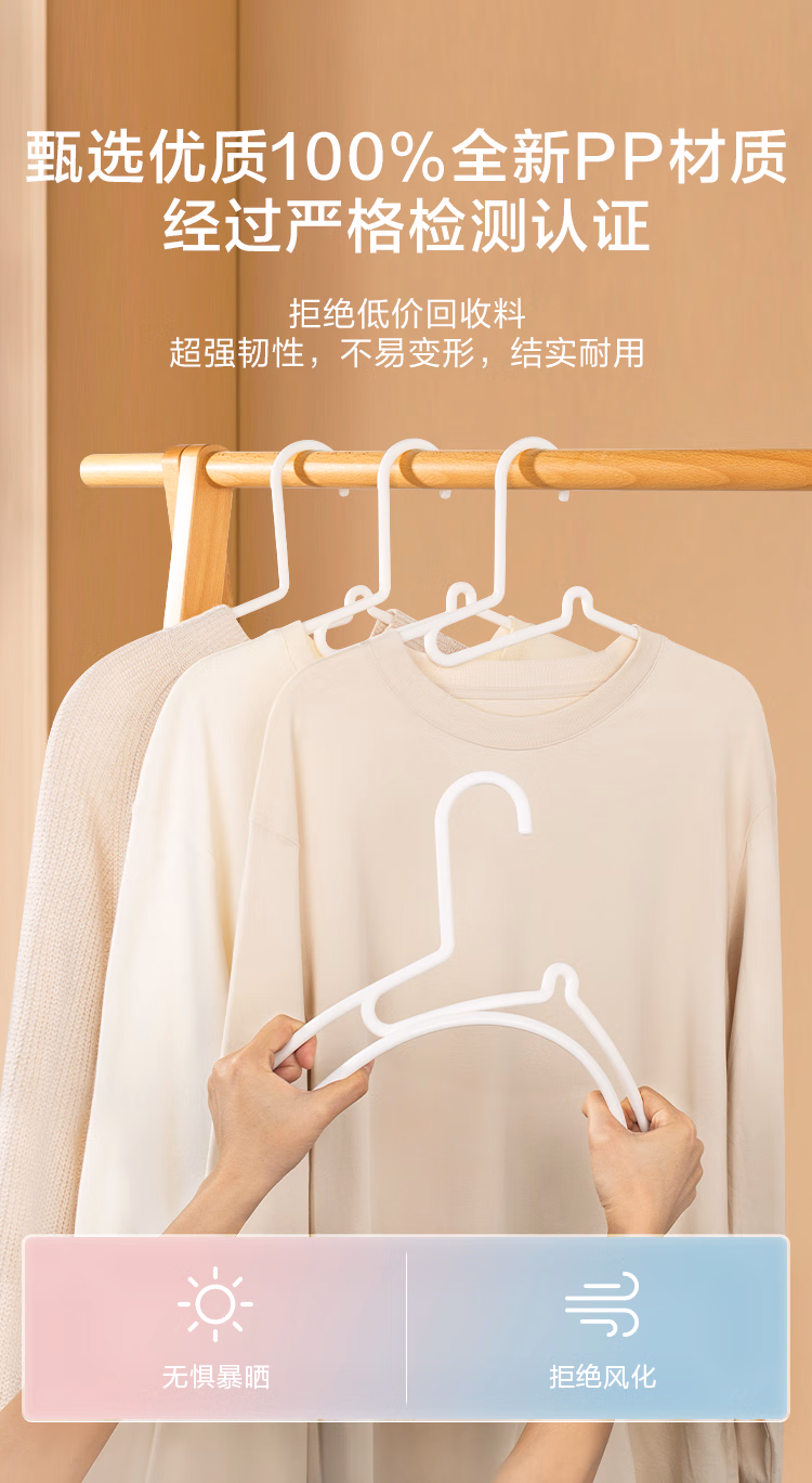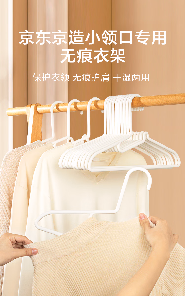 包装清单  :   京东京造 白天鹅 护领衣架无痕晾衣架塑料晒衣服架防变形衣挂衣撑10个白