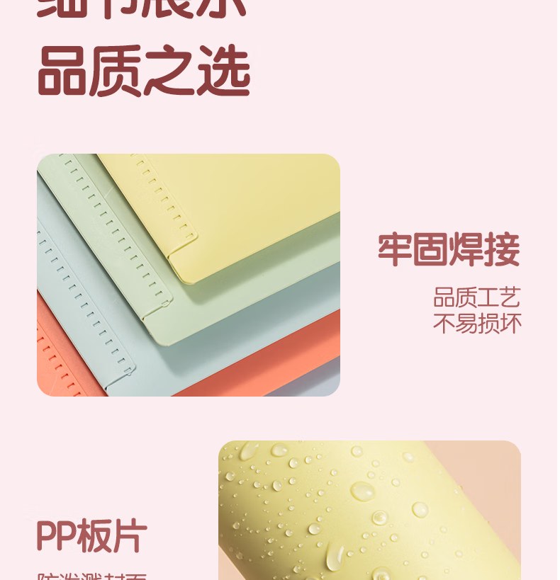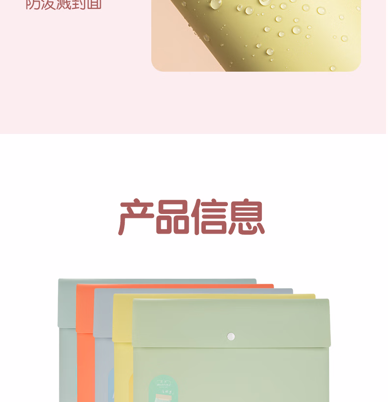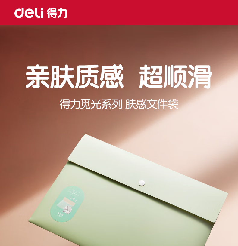 包装清单  :   得力(deli)得力(deli)觅光A4按扣文件袋 亲肤手感桌面文件收纳试卷学科分类塑料防水资料档案袋 学习用品颜色随机PP308