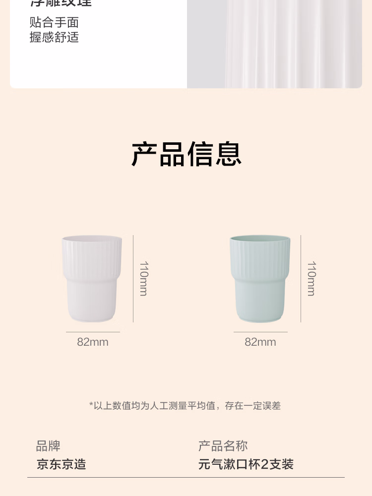 包装清单  :   京东京造元气抗菌漱口杯加厚牙刷杯子简约洗漱 【叠落款】2个装