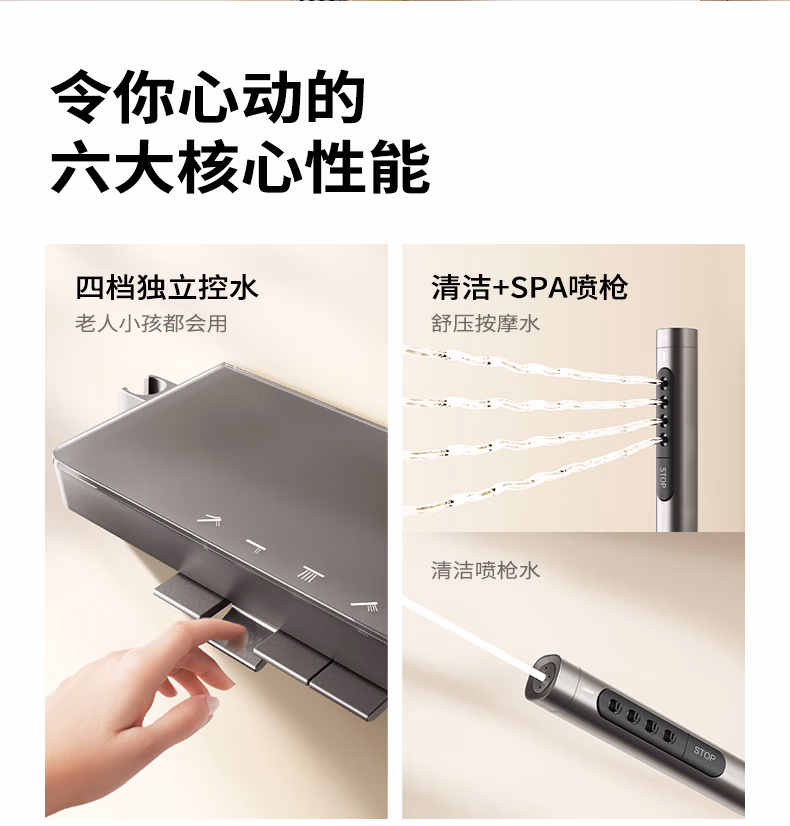 包装清单  :   九牧(JOMOO)花洒套装琴键按摩喷枪除垢顶喷水愈精灵淋浴器36668-882/HBS-1