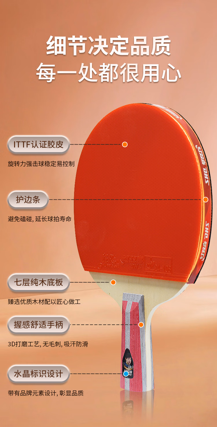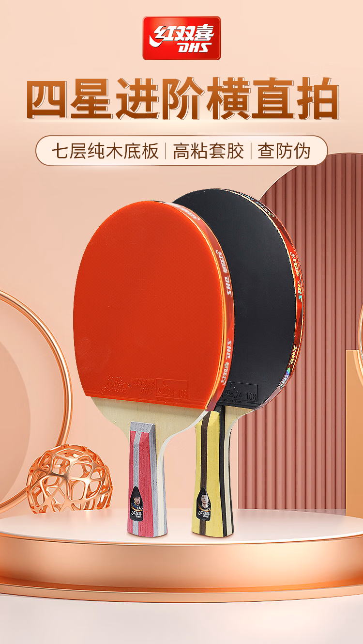 包装清单  :   红双喜(DHS)进阶型乒乓球拍四星级横拍H4002反胶单拍