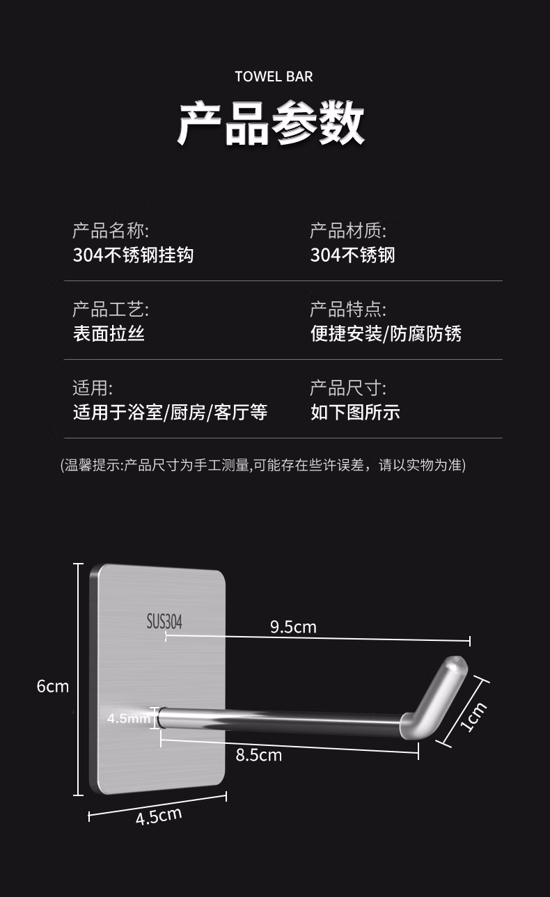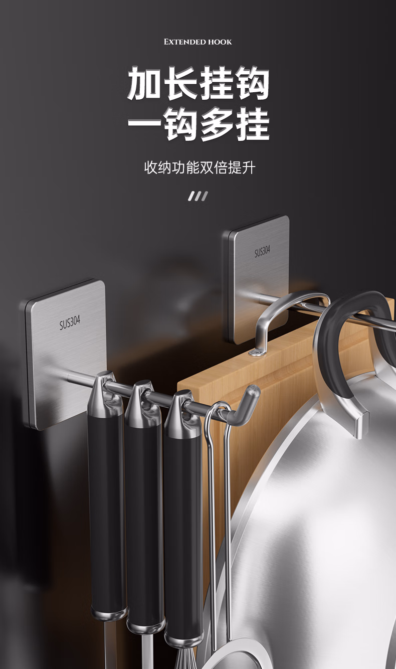 包装清单  :   百字挂钩304不锈钢加长粘钩卫生间置物架门后挂衣帽钩厨房钩子