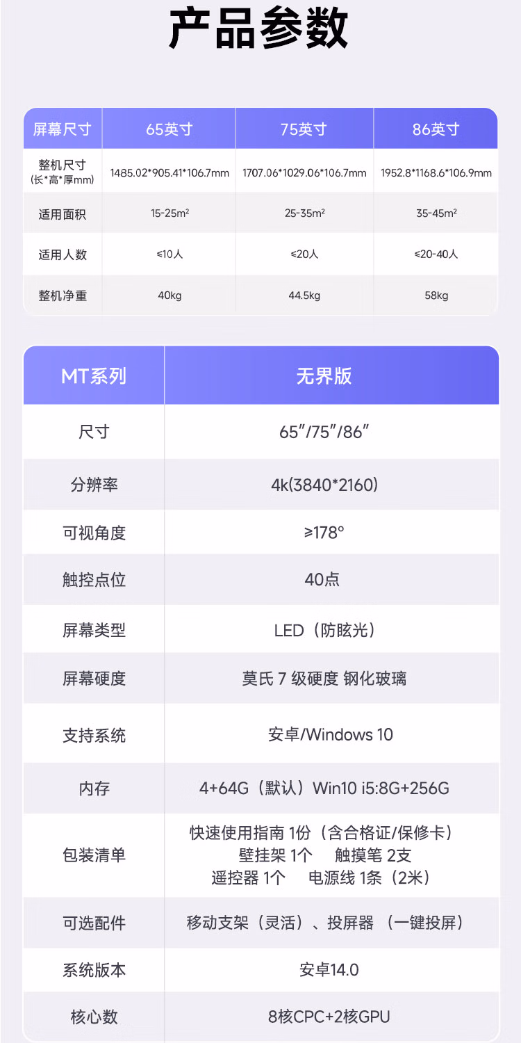 包装清单  :   创维(Skyworth)75英寸会议平板一体机教学一体机触摸触控屏会议显示大屏MT7511