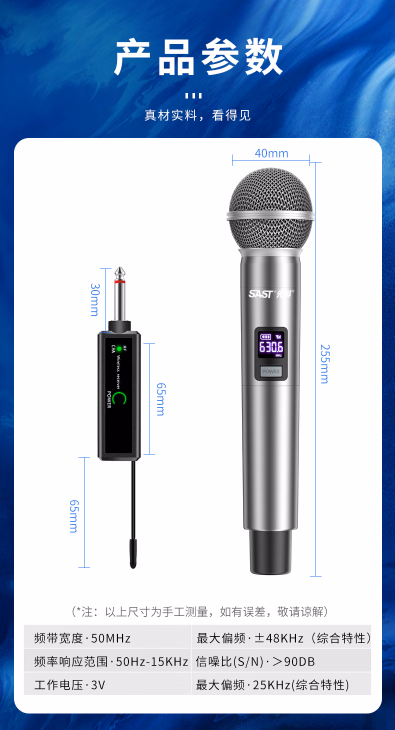 包装清单  :   先科(SAST)ok-95B 手持充电无线麦克风U段家庭KTV唱歌舞台主持演讲K歌会议音箱功放调频万能一拖二金属话筒