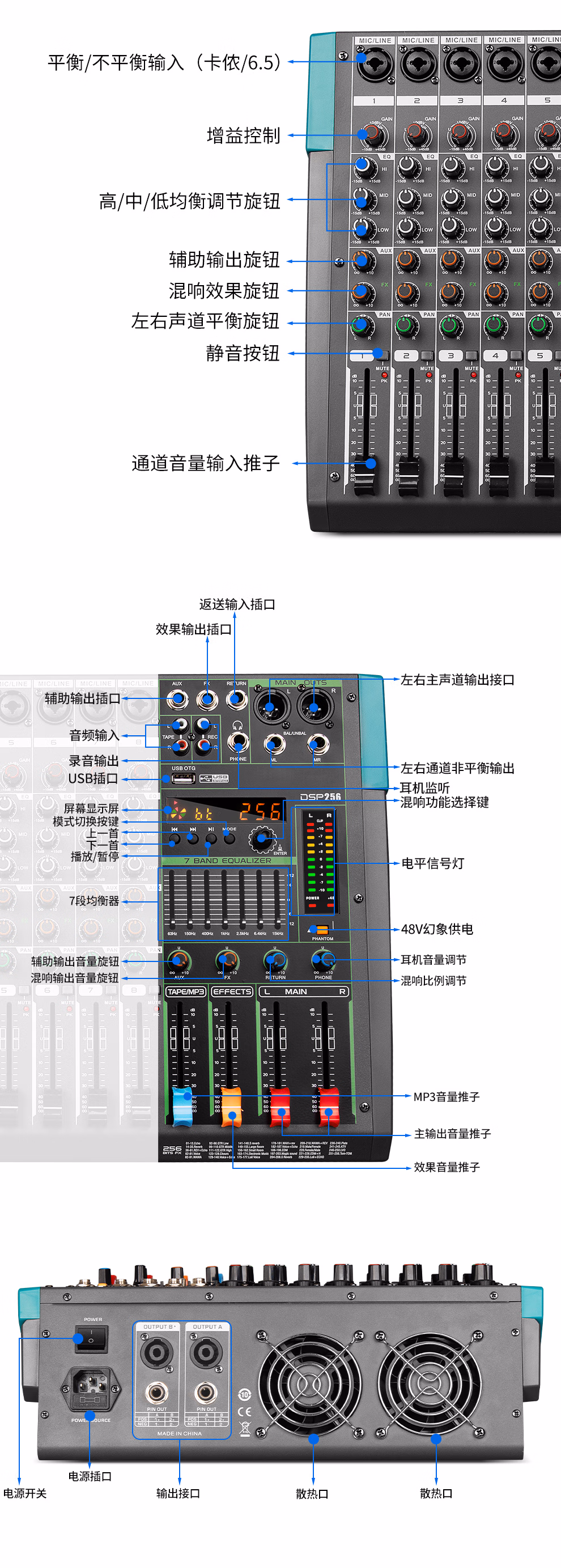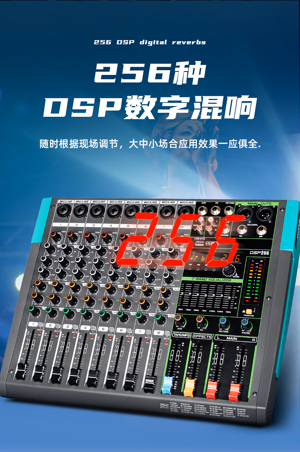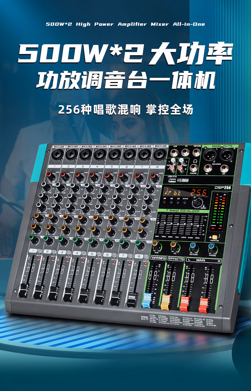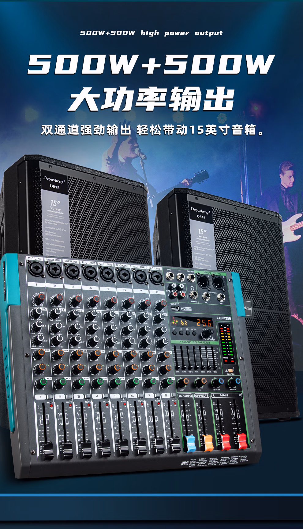 包装清单  :   depusheng8路调音台带功放一体机 舞台演出家庭KTV婚庆酒吧会议256种混响蓝牙USB单15英寸 500W*2 大功率GT2
