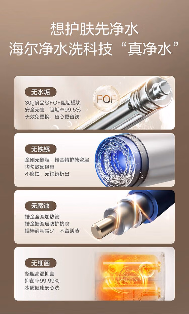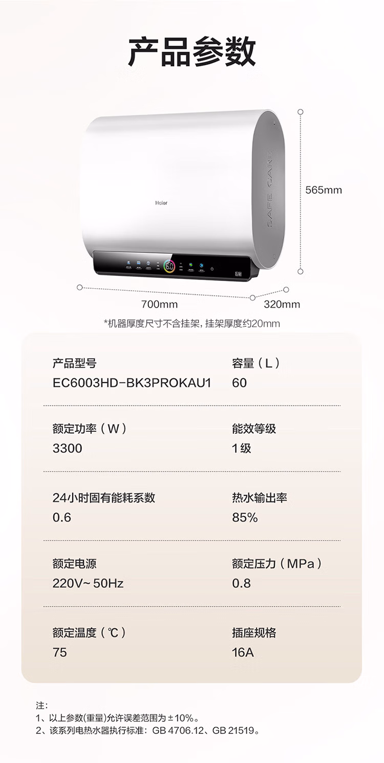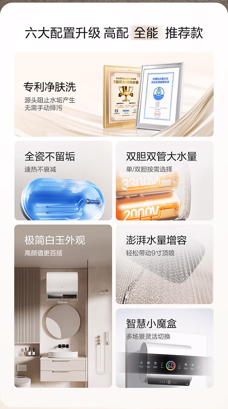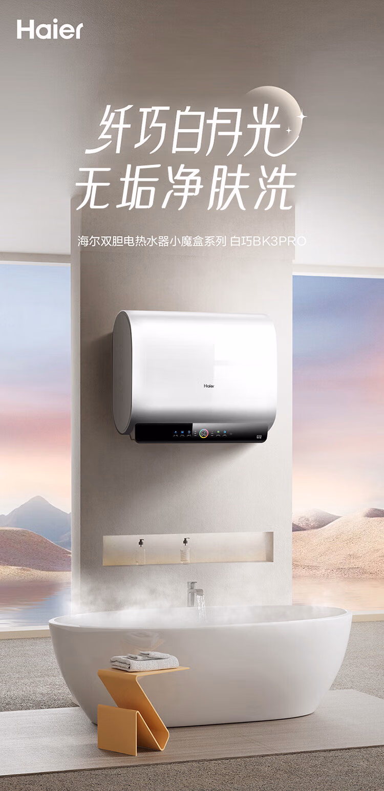 包装清单  :   双胆扁桶电热水器60升 BK3PRO 小魔盒鲜活水 净肤洗AI智慧 3300W速热免清洗镁棒免更换