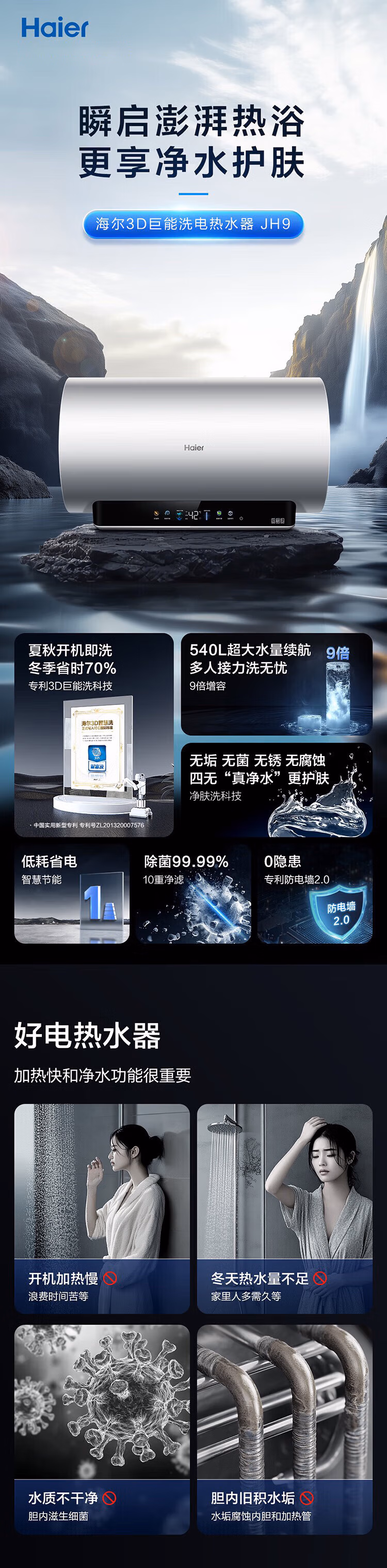 包装清单  :   80升 小红花JH9 无垢鲜活水净肤洗 JH7升级款 3D巨能洗 3300W瞬热家用储水式