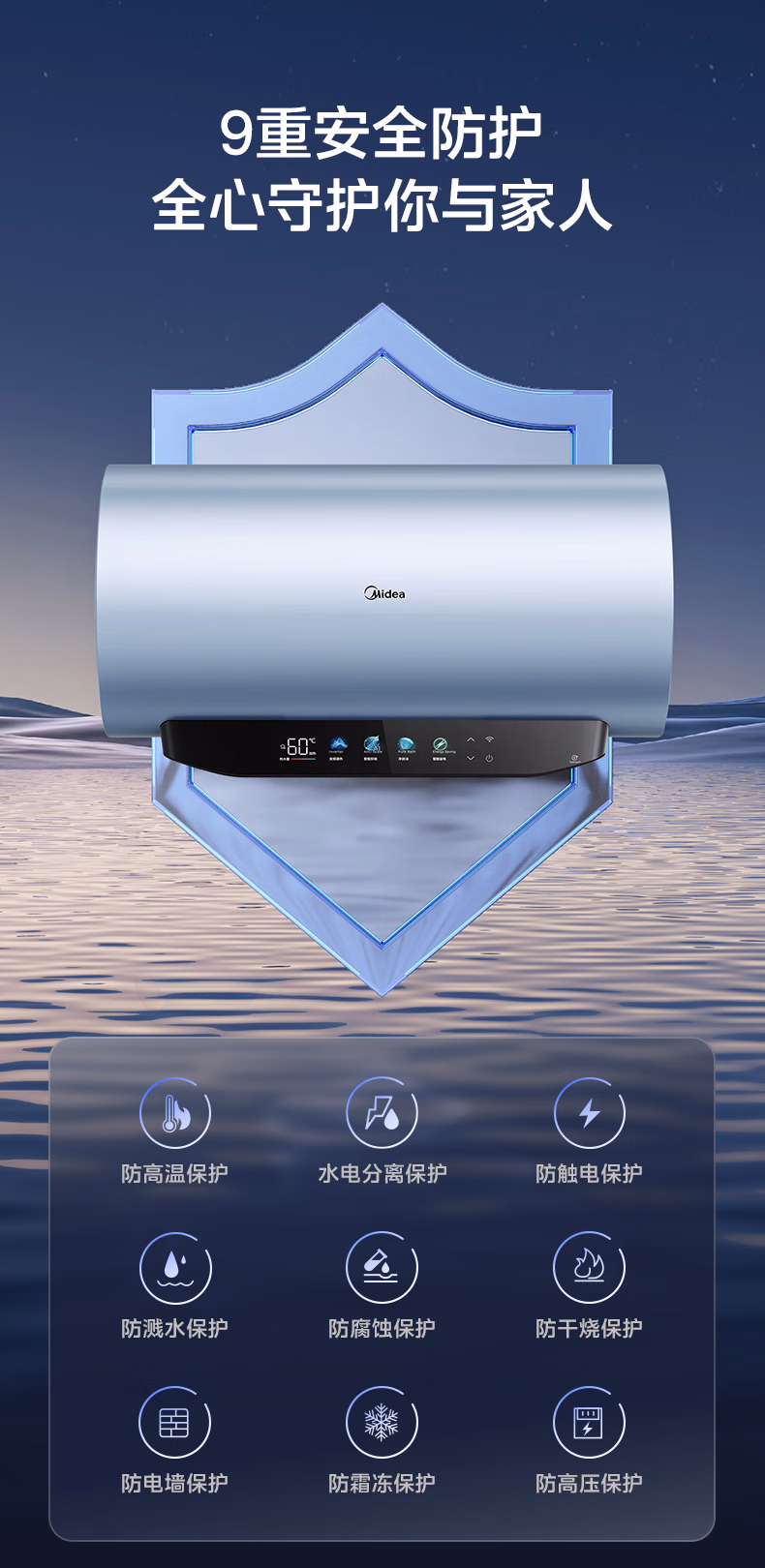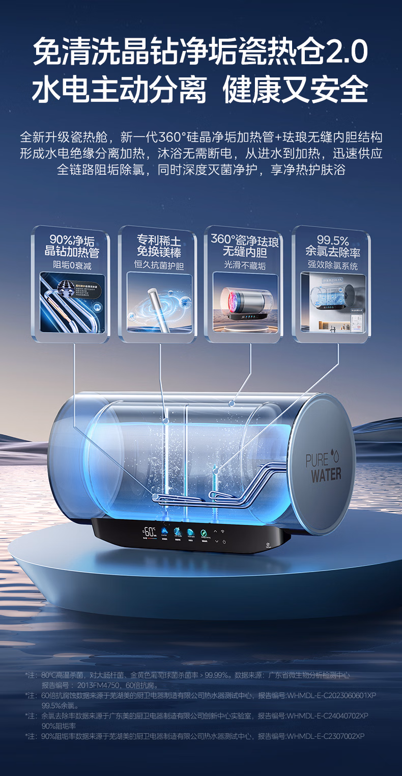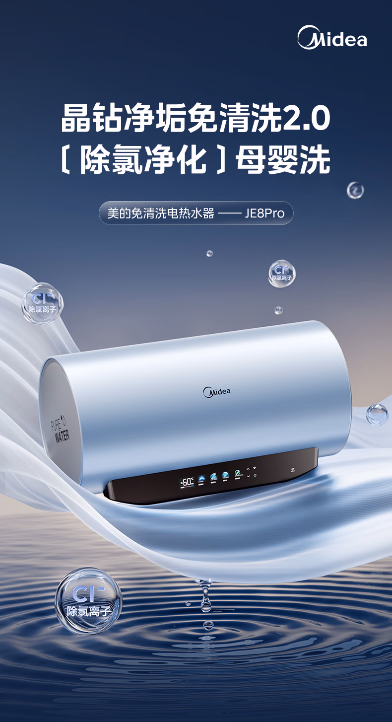 包装清单  :   美的/Midea F6033-JE8Pro(HE) 热水器 免清洗电热水器60升家用3300W变频储水式水电分离除氯养肤洗F6033-JE8Pro(HE)