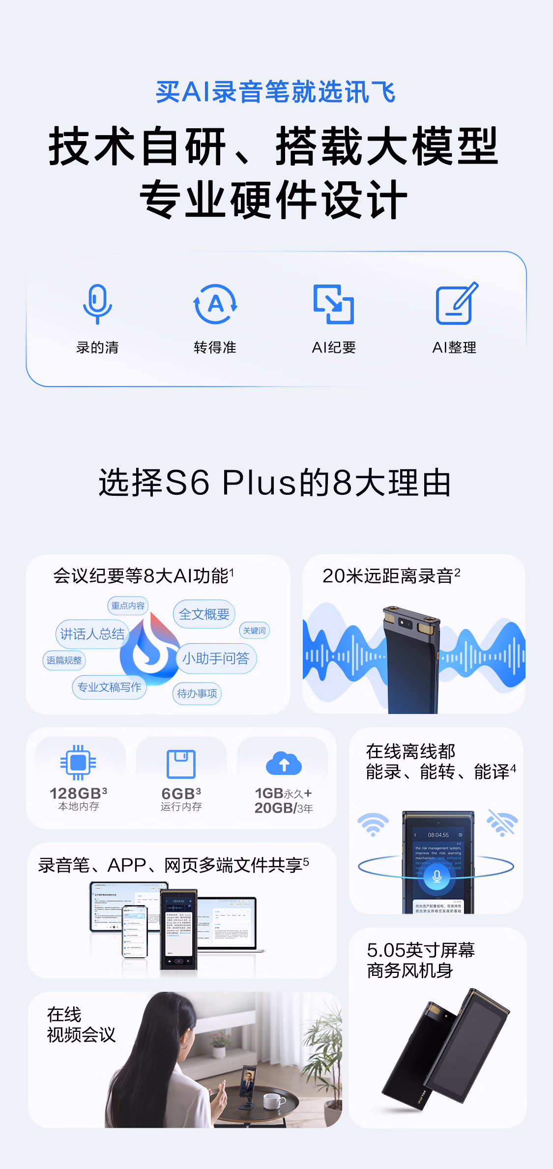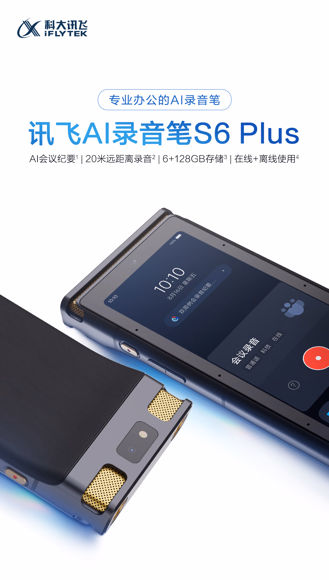 包装清单  :   科大讯飞AI录音笔S6 Plus 免费录音转文字 同声转译 会议纪要 专业录音取证设备录音神器 超远距离录音机