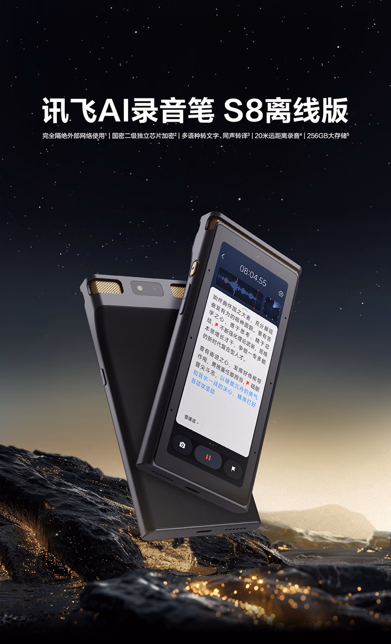 包装清单  :   科大讯飞AI录音笔S8离线版 256G大内存 20米远距离录音 安全加密 高清降噪 离线转写翻译
