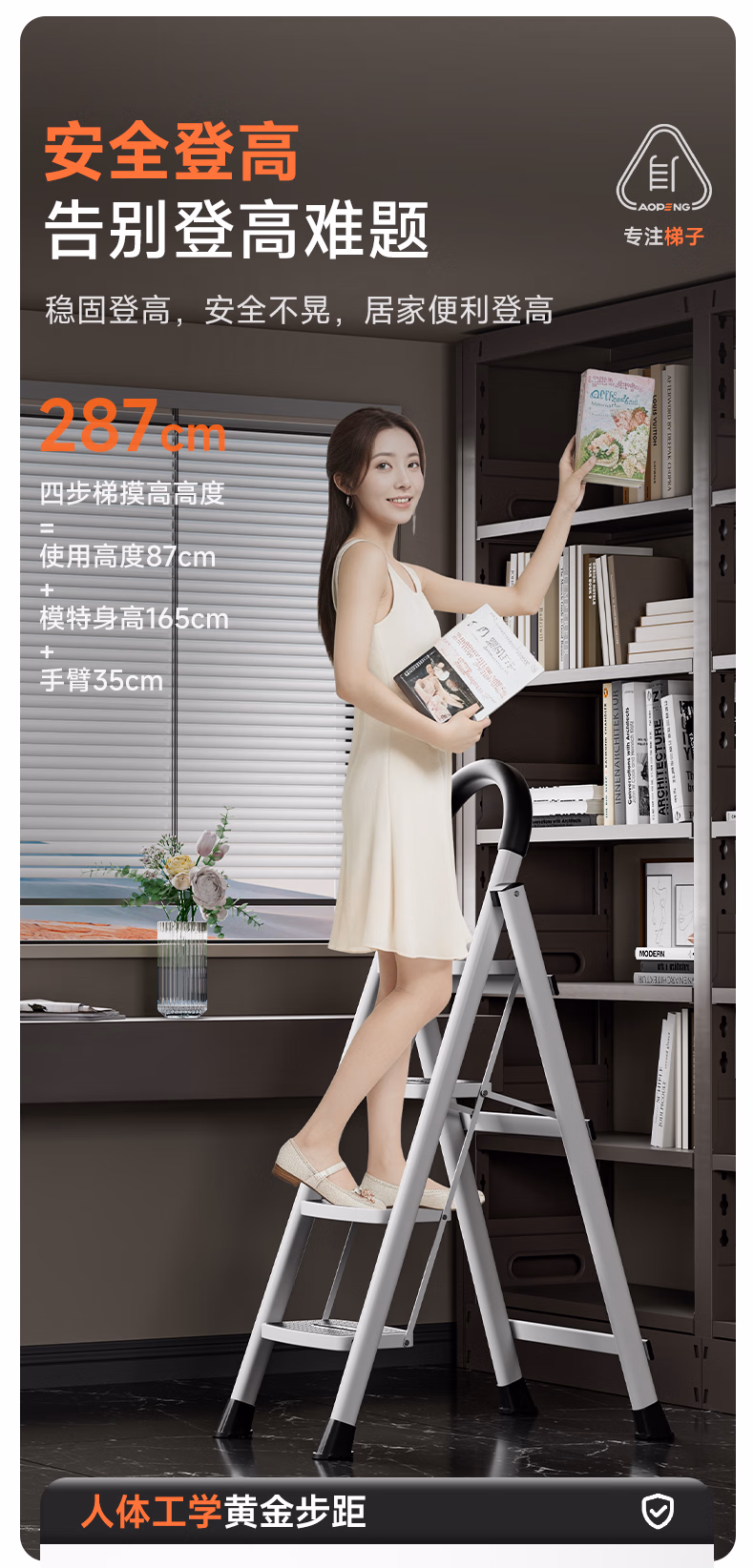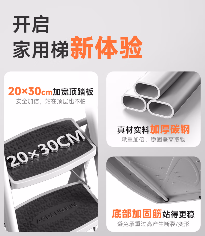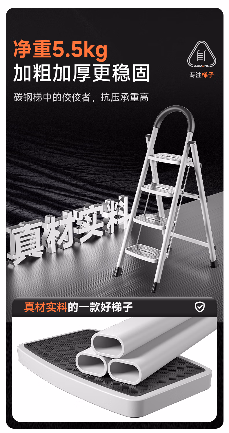 包装清单  :   奥鹏 梯子家用四步折叠梯子加厚钢管铁梯宽踏板人字梯单侧工程梯
