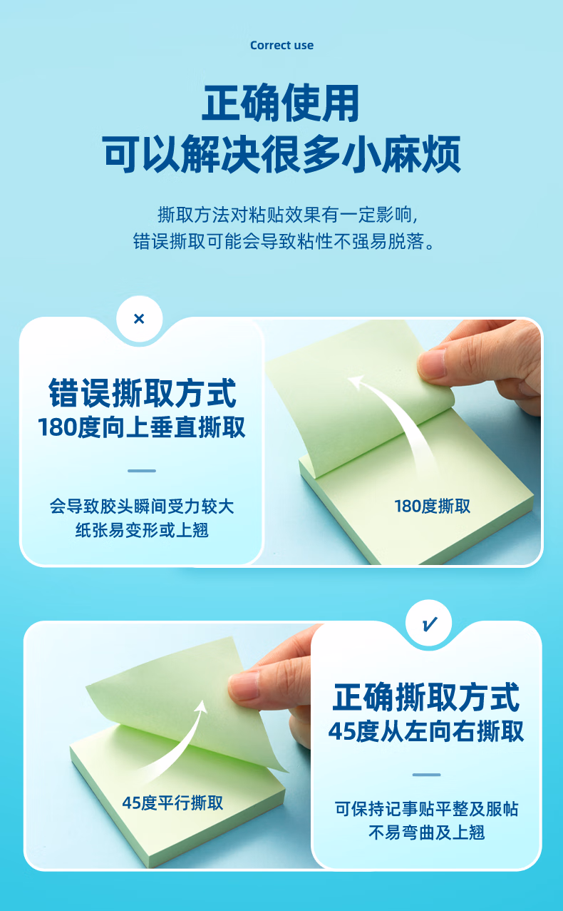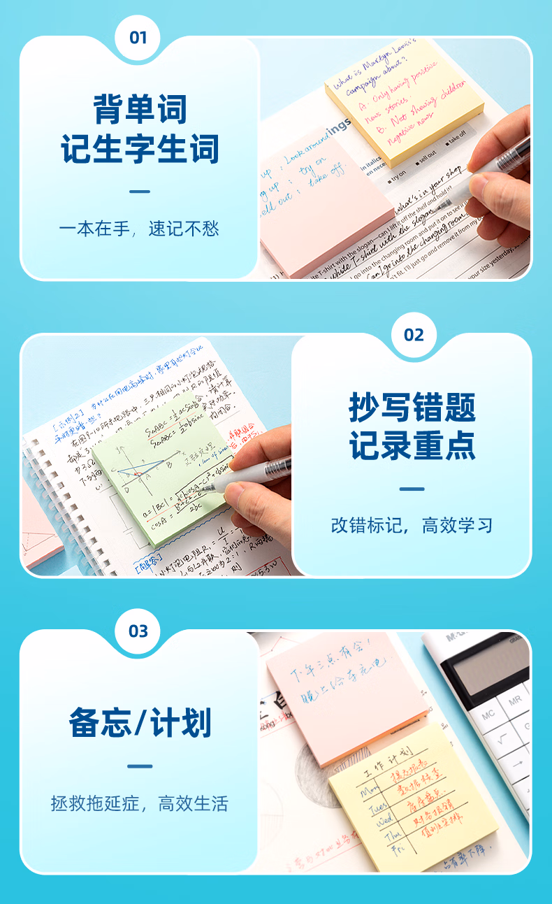 包装清单  :   晨光(M&G)文具便利贴400张4色 便签纸便签贴纸n次贴 学生记事贴粘性强本子 办公用品 YD-919