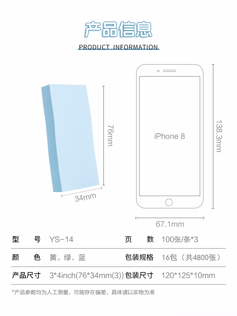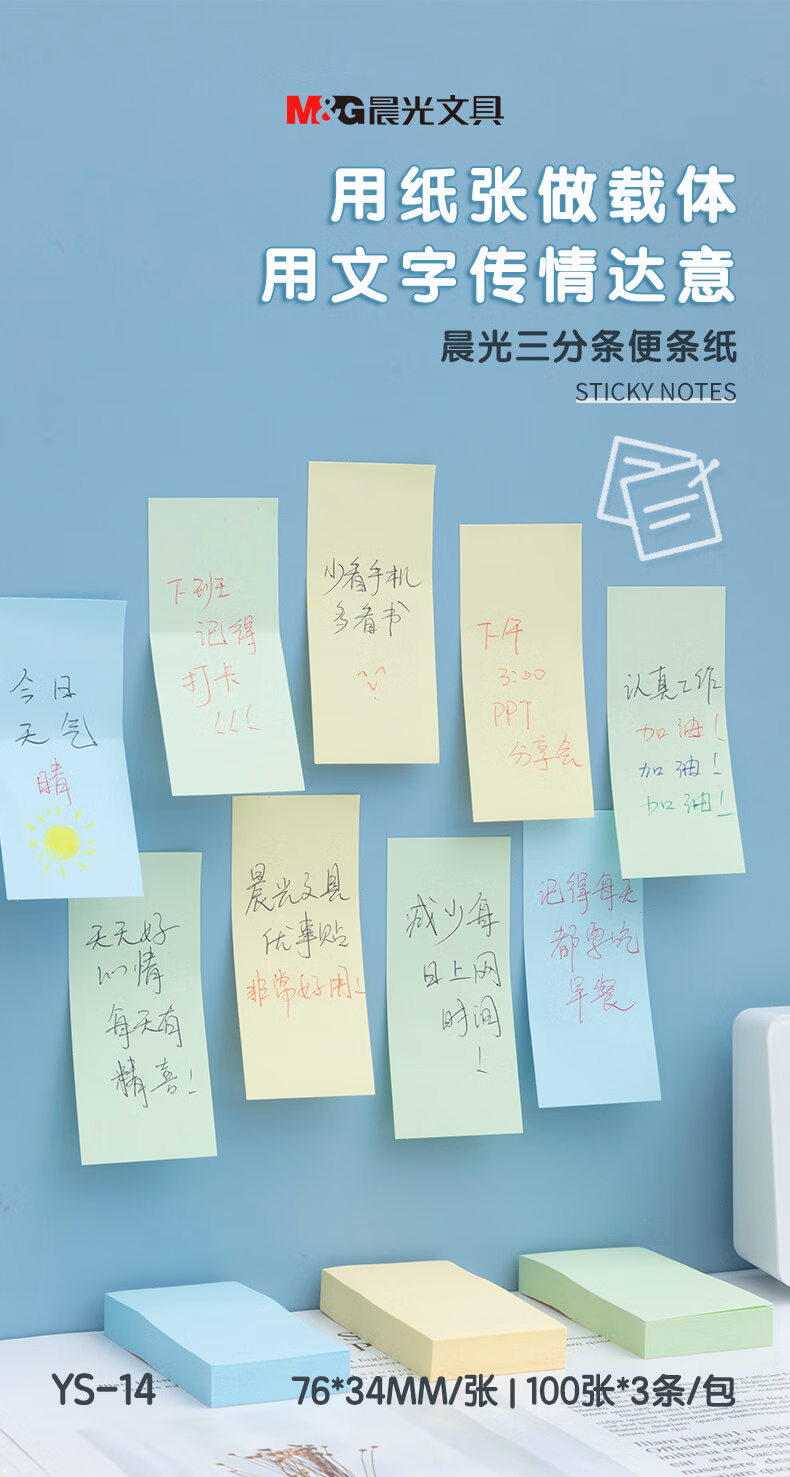 包装清单  :   晨光(M&G)文具4800张彩色索引便利贴标签贴大号便签小条备注标记贴便条纸3色76*34mm办公用品16包