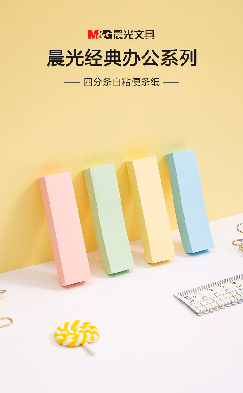 包装清单  :   晨光(M&G)文具彩色小号索引便利贴标签贴便签贴纸粘性小条标记书签贴4色76*19mmYS-13办公用品