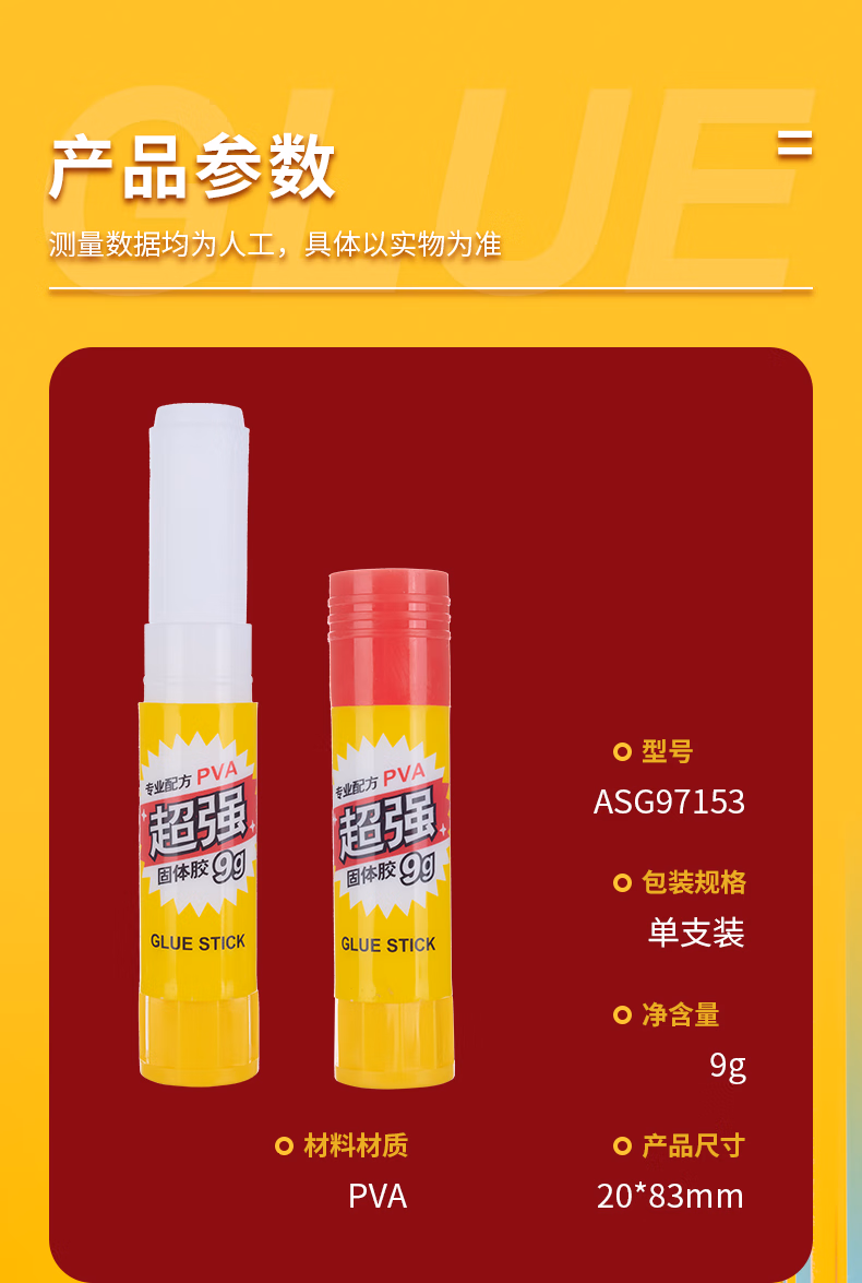 包装清单  :   晨光(M&G)9g强力高粘度固体胶 PVA胶棒 固体黏胶 快干耐用胶棒 开学必备学习办公用品 单个装ASG97153