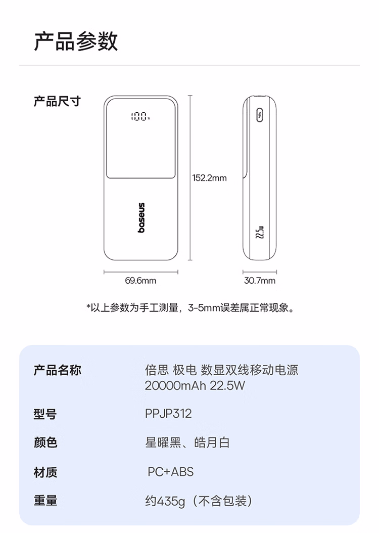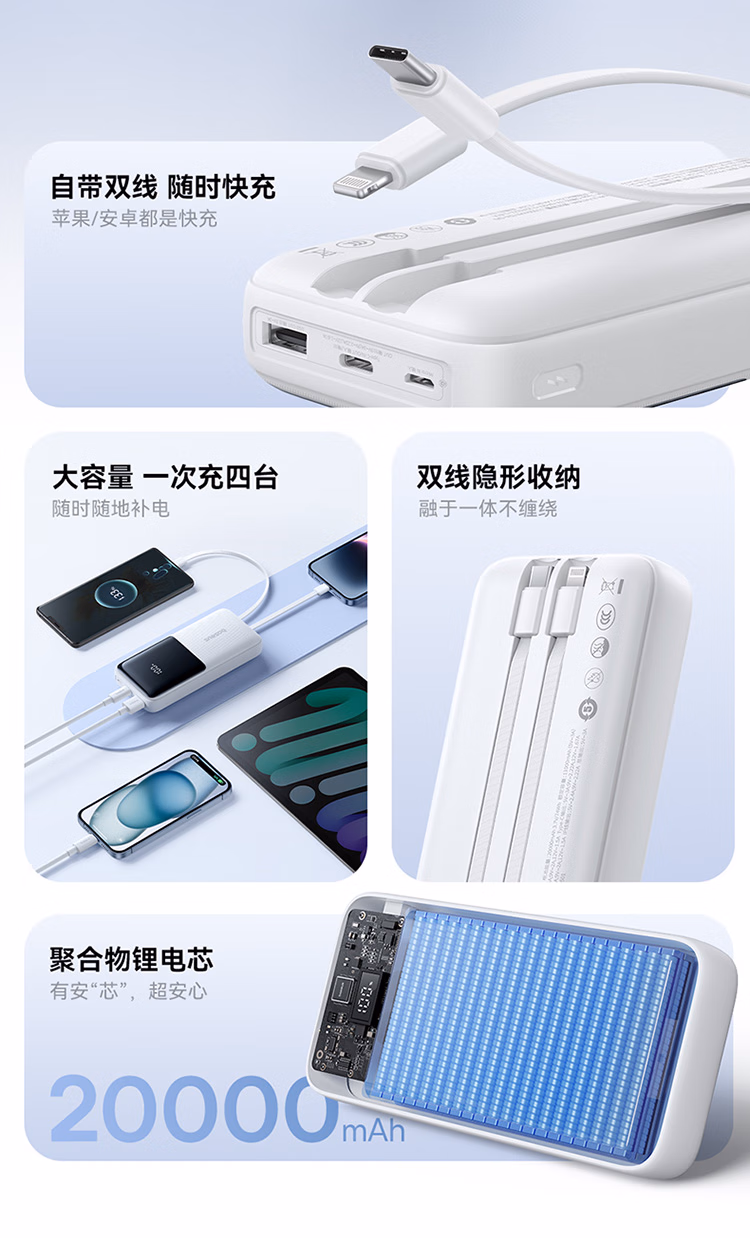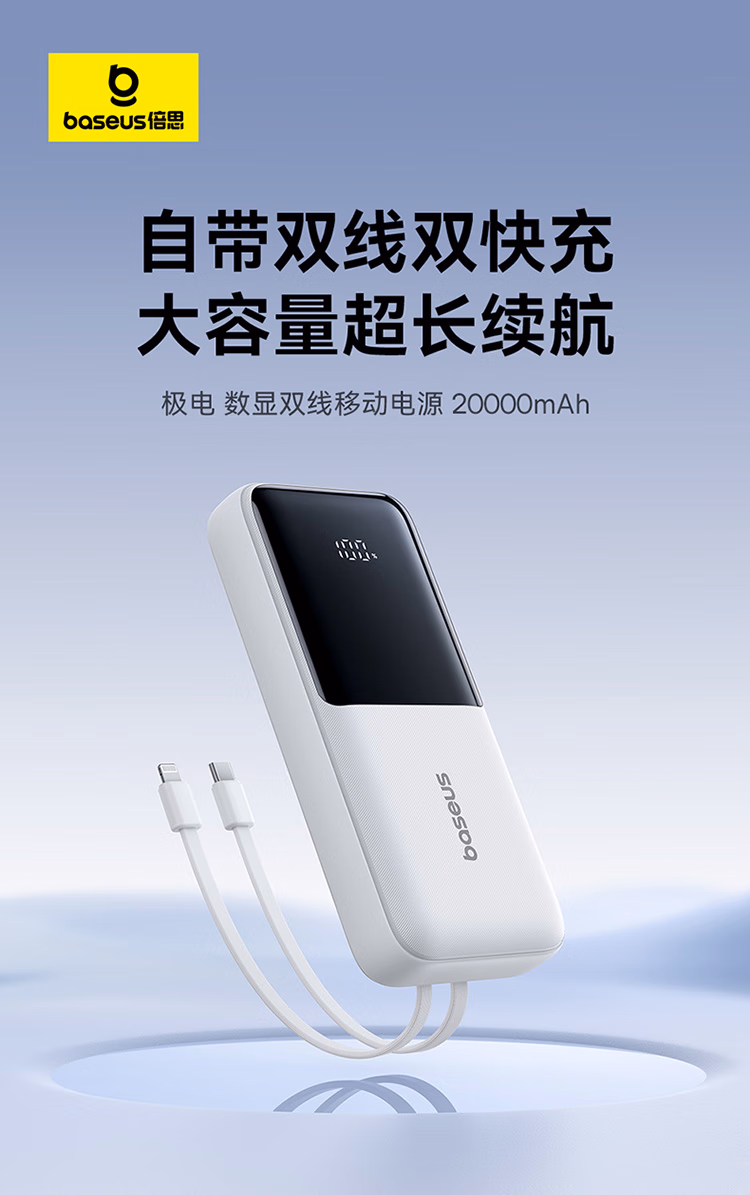 包装清单  :   倍思(Baseus)【国标3C认证】自带线充电宝20000毫安快充大容量移动电源