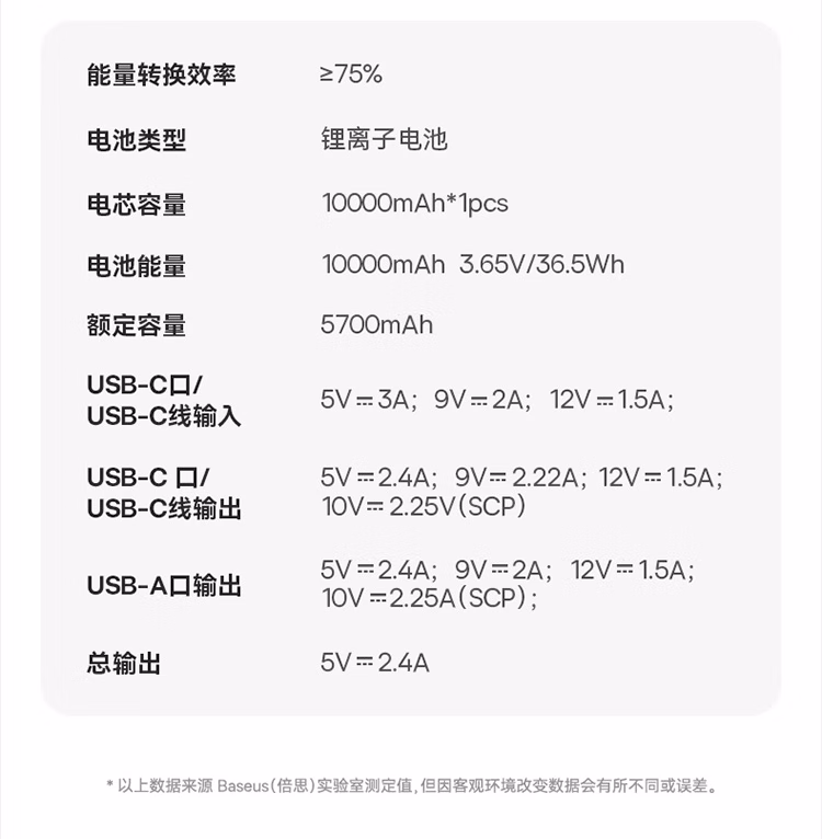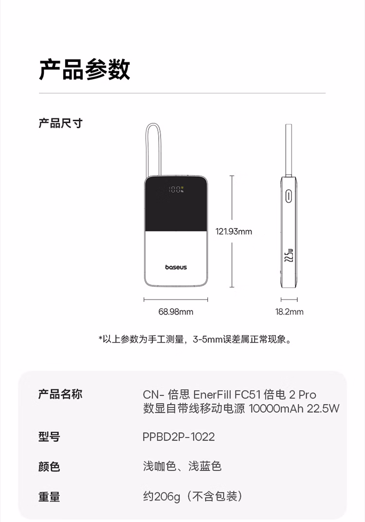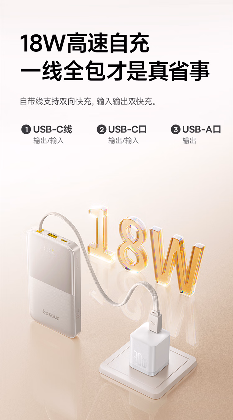 包装清单  :   倍思【国家3C安全认证】充电宝自带线快充迷你10000毫安22.5W