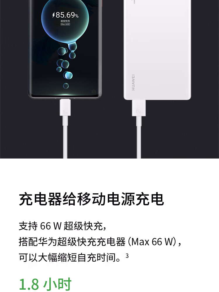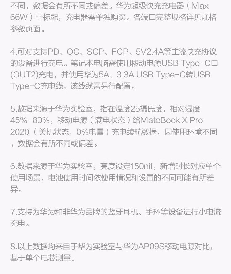 包装清单  :   华为【3C认证】可上飞机12000mAh 66W多协议双向超级快充移动电源充电宝旗舰手机原装电芯安全可靠白色