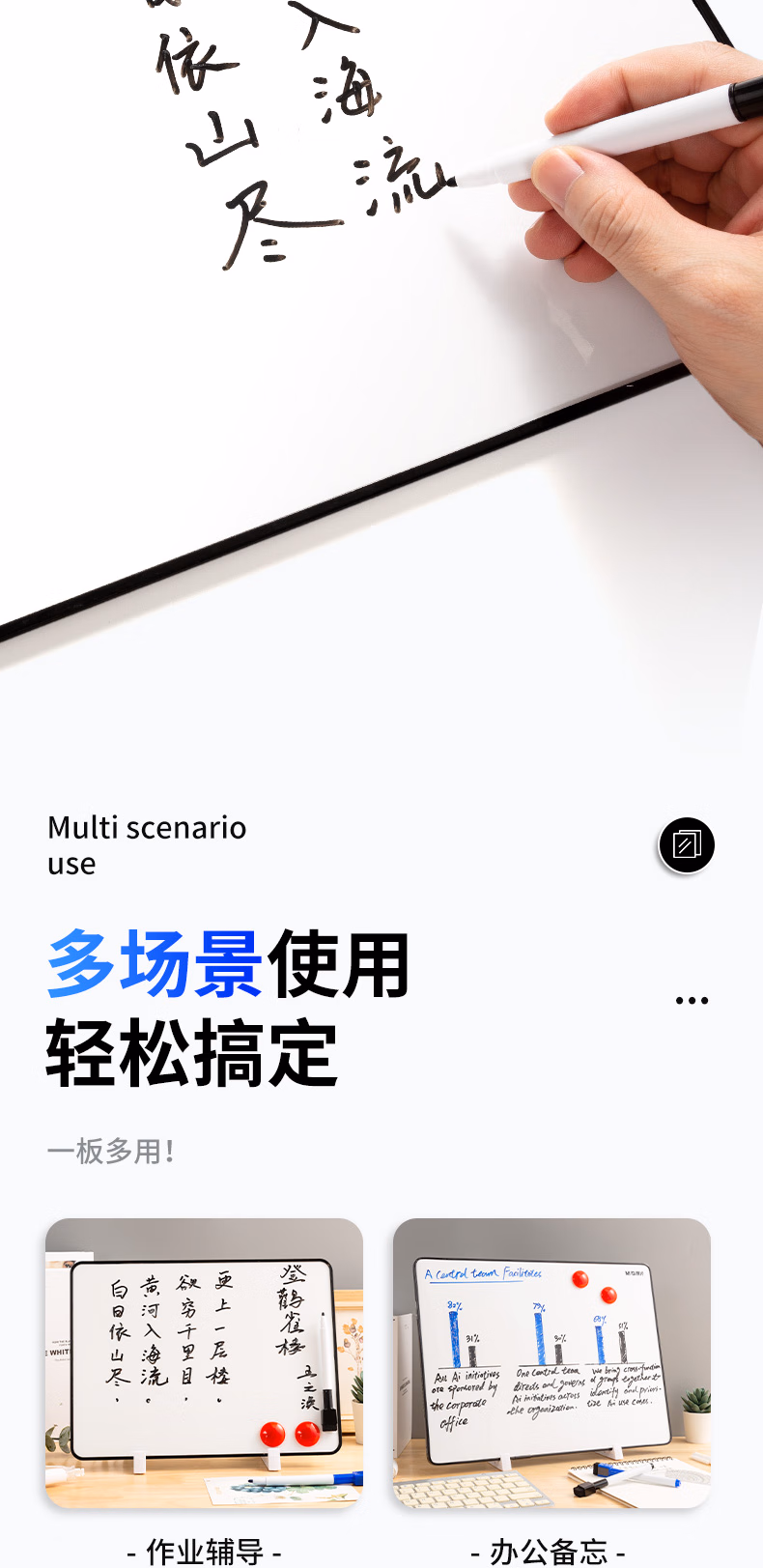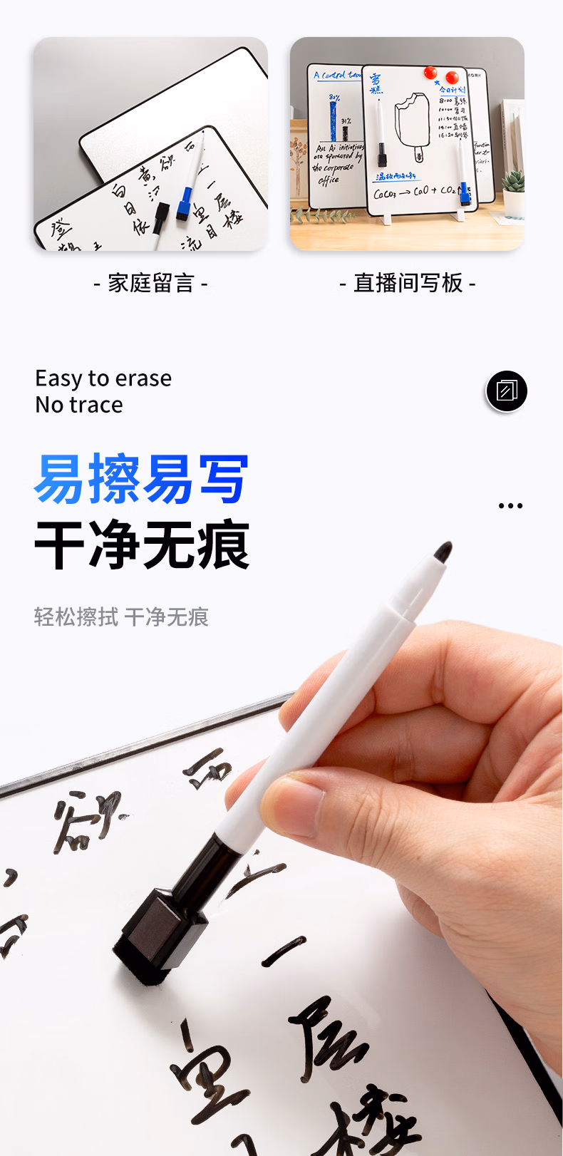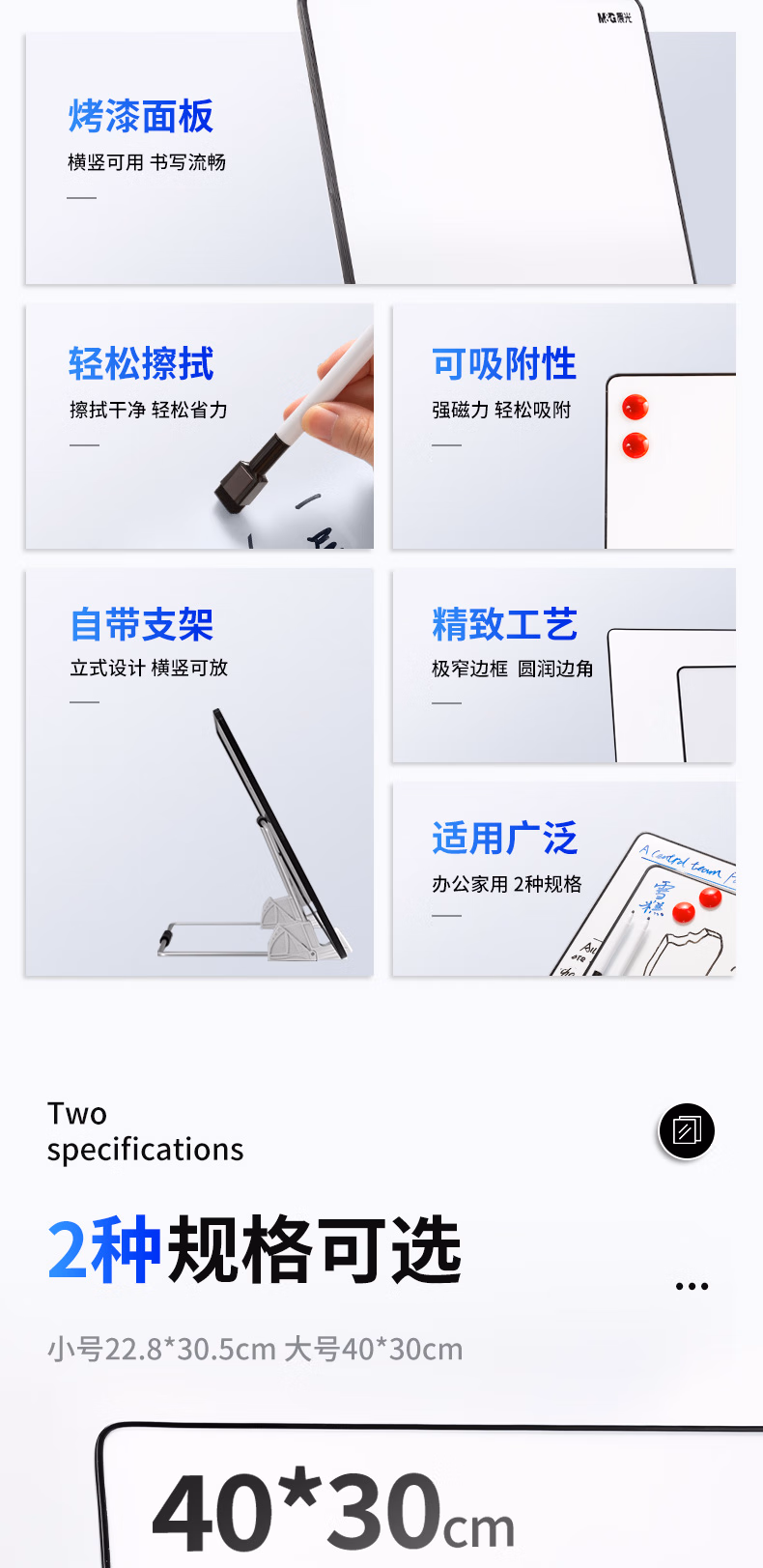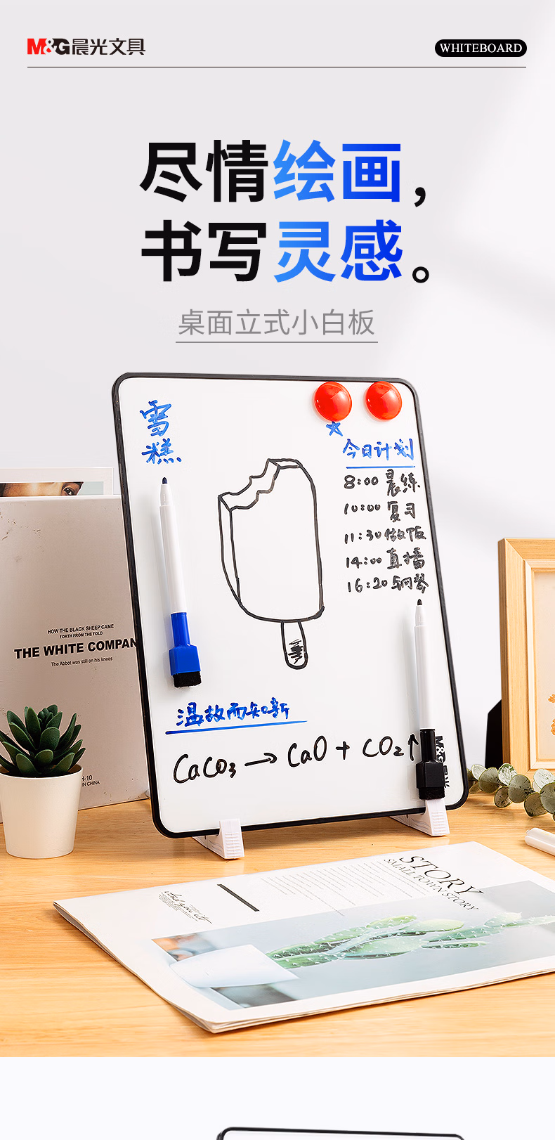 包装清单  :   晨光(M&G)桌面手持小白板可擦写单面桌面写字板 磁性儿童家用教学小黑板记事备忘提示板40*30cmADB983CT