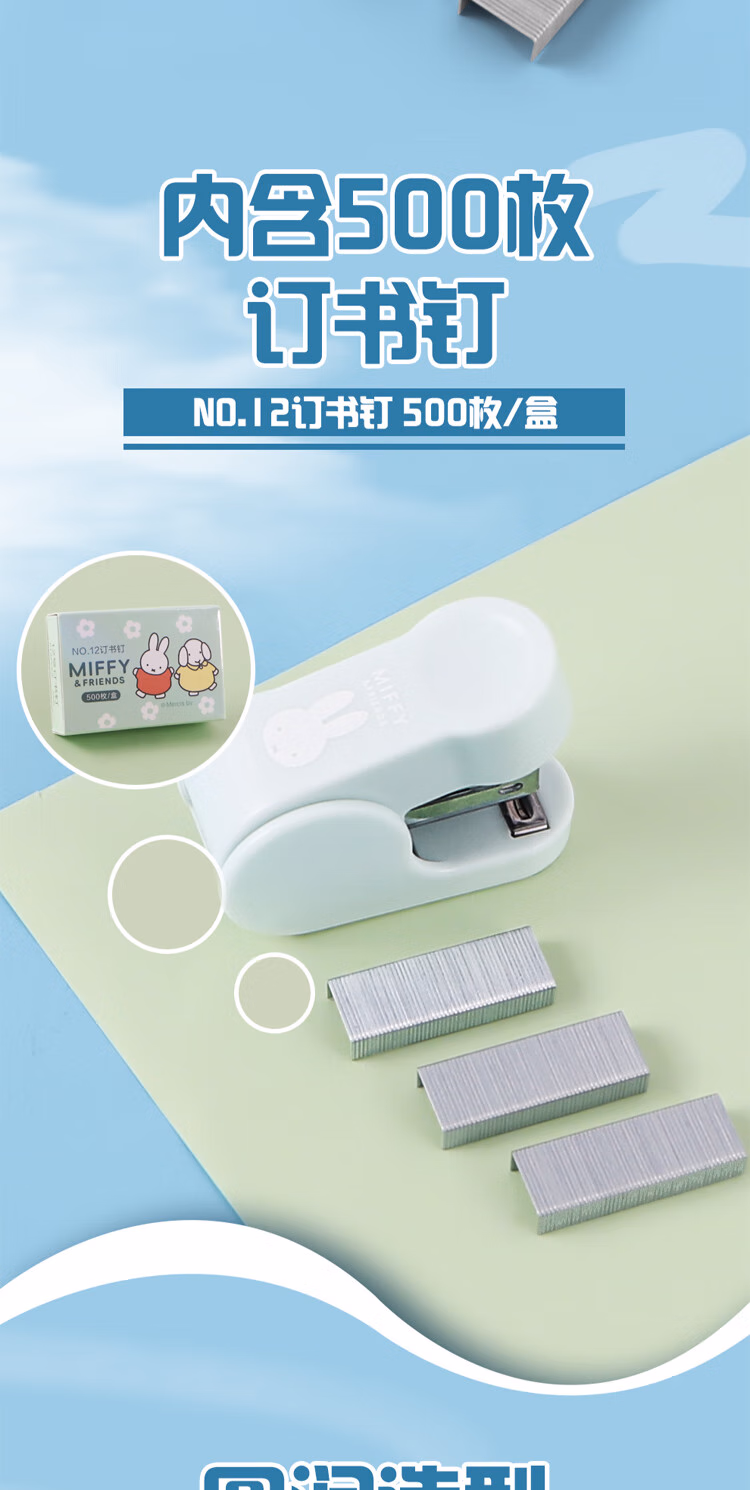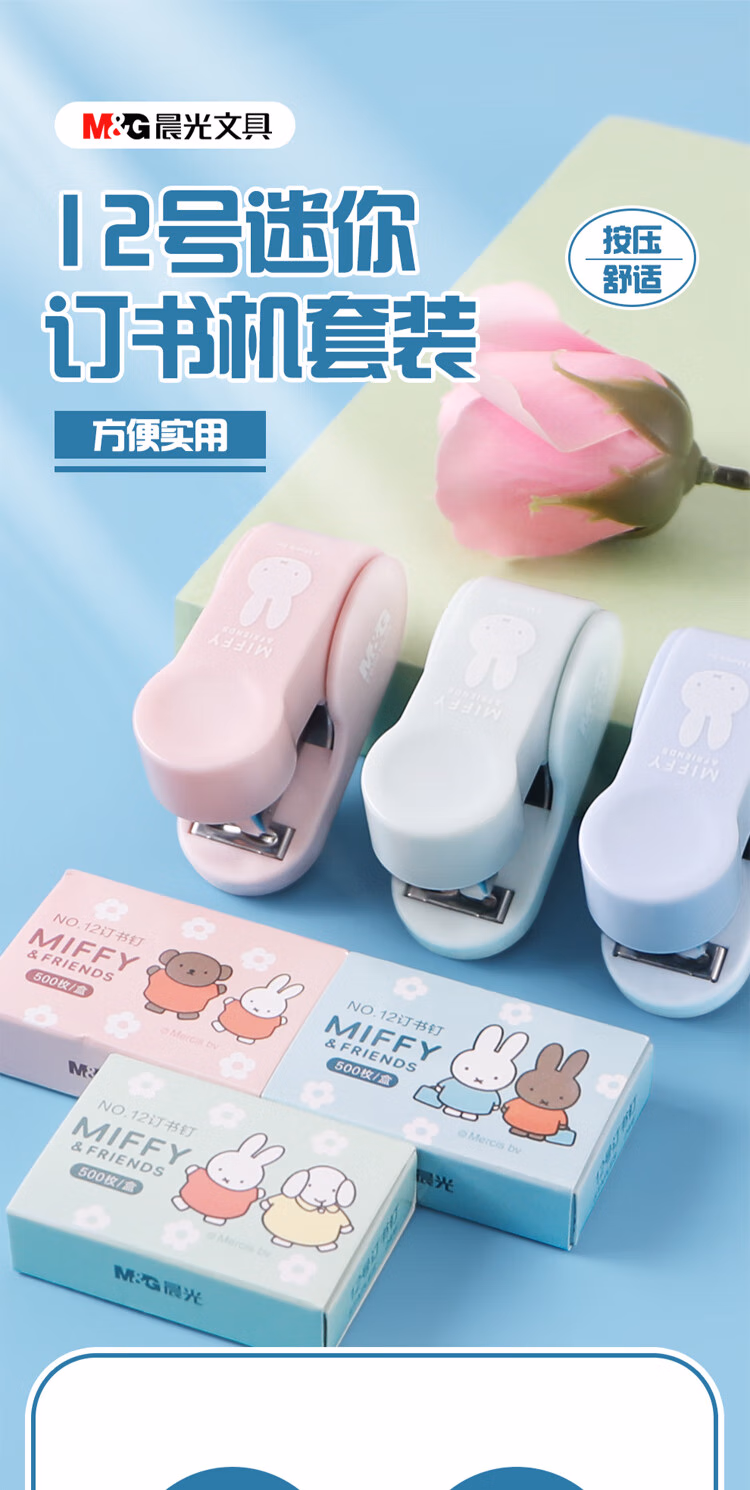 包装清单  :   晨光(M&G)米菲迷你小号订书机套装 学生办公轻巧便携订书器装订器12号 25页 FBS916JW 蓝色