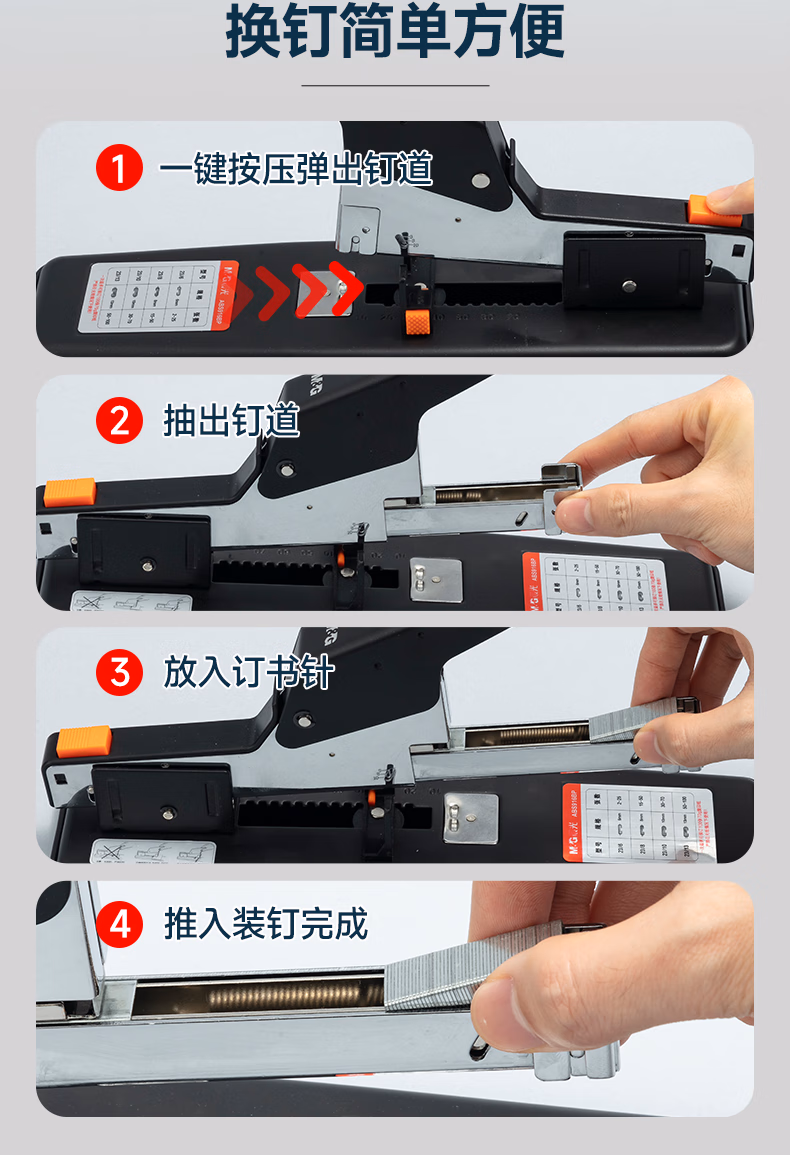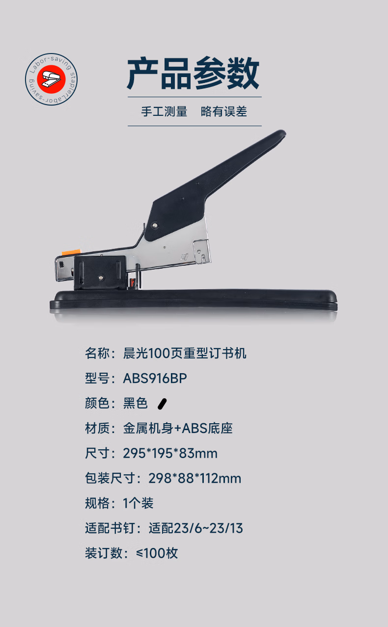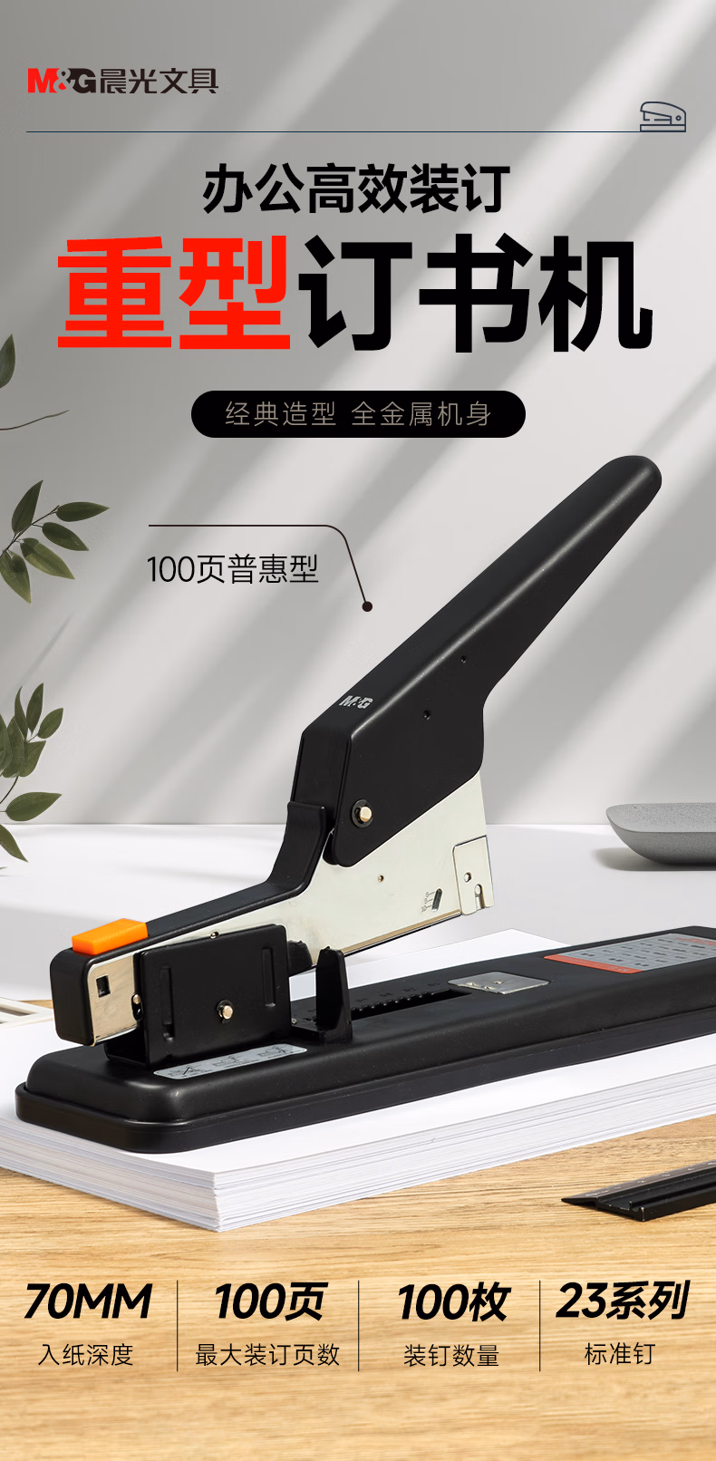 包装清单  :   晨光(M&G)100页简约重型大订书机 大号加厚重型办公用品订书器 ABS916BP