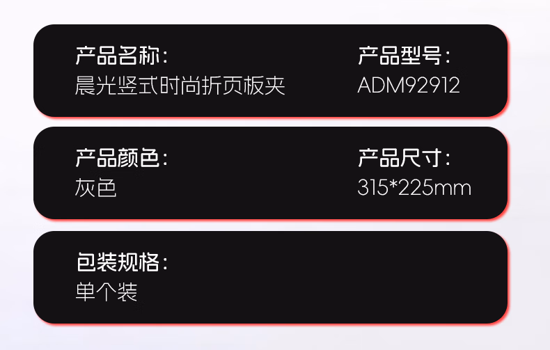 包装清单  :   晨光(M&G)文具 A4书写文件夹竖式时尚折页板夹办公用品 文件夹夹板菜单夹写字垫板 四色随机ADM9291219