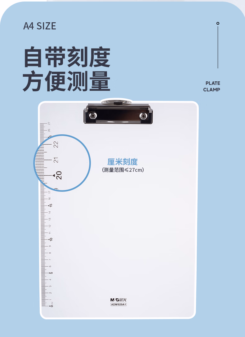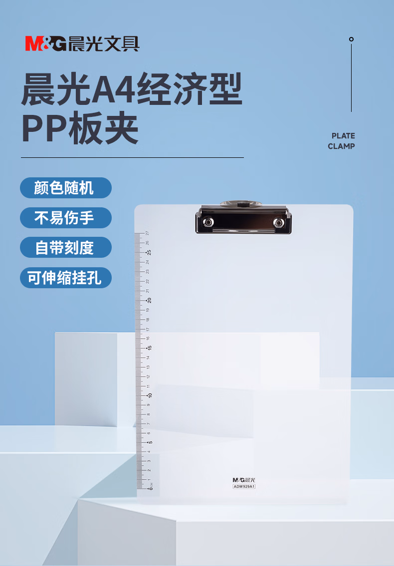 包装清单  :   晨光(M&G)文具 文件夹夹板写字板 a4板夹加厚(带刻度尺) 会议垫板试卷夹菜单夹 办公用品颜色随机ADM929A1