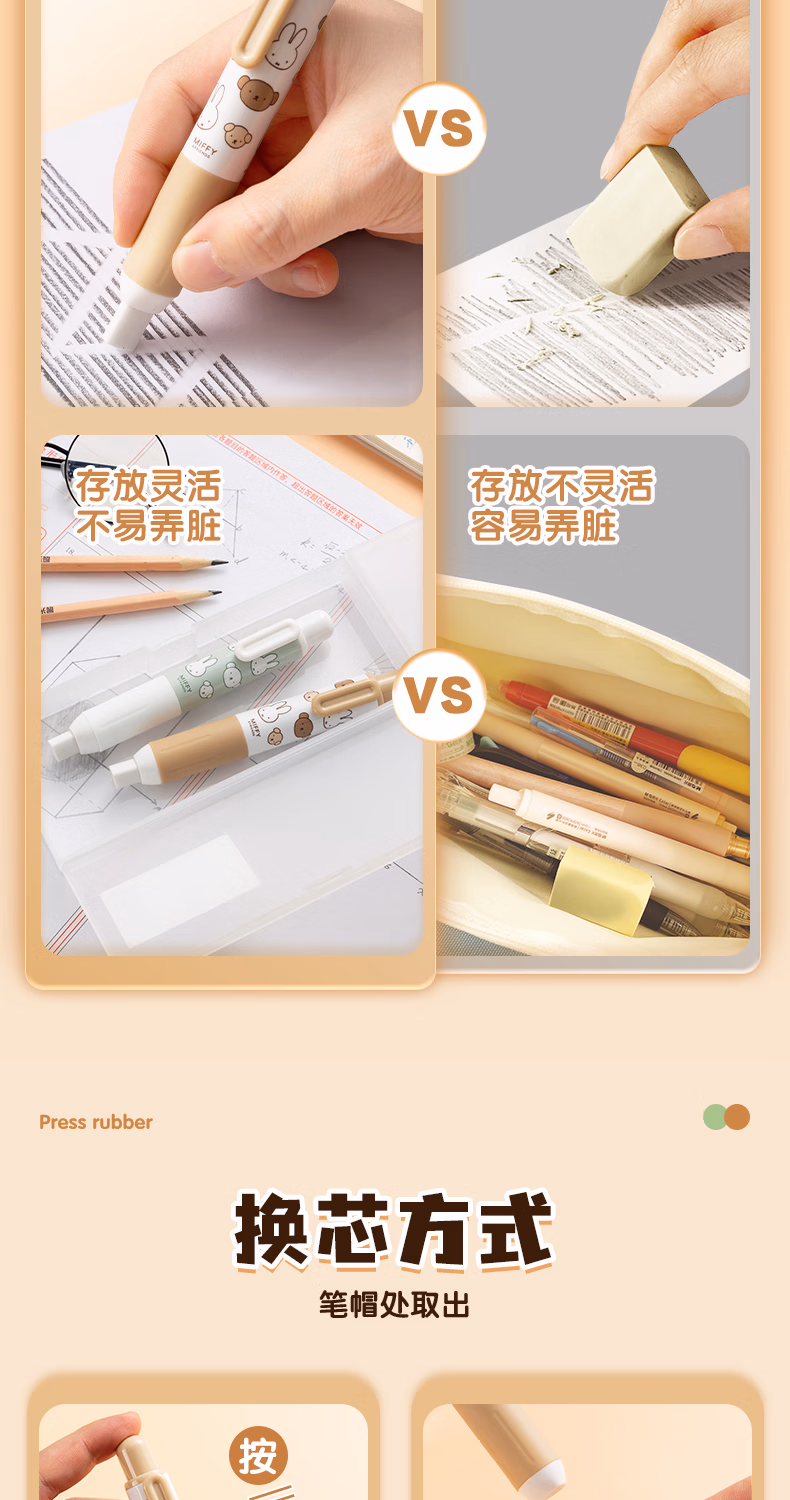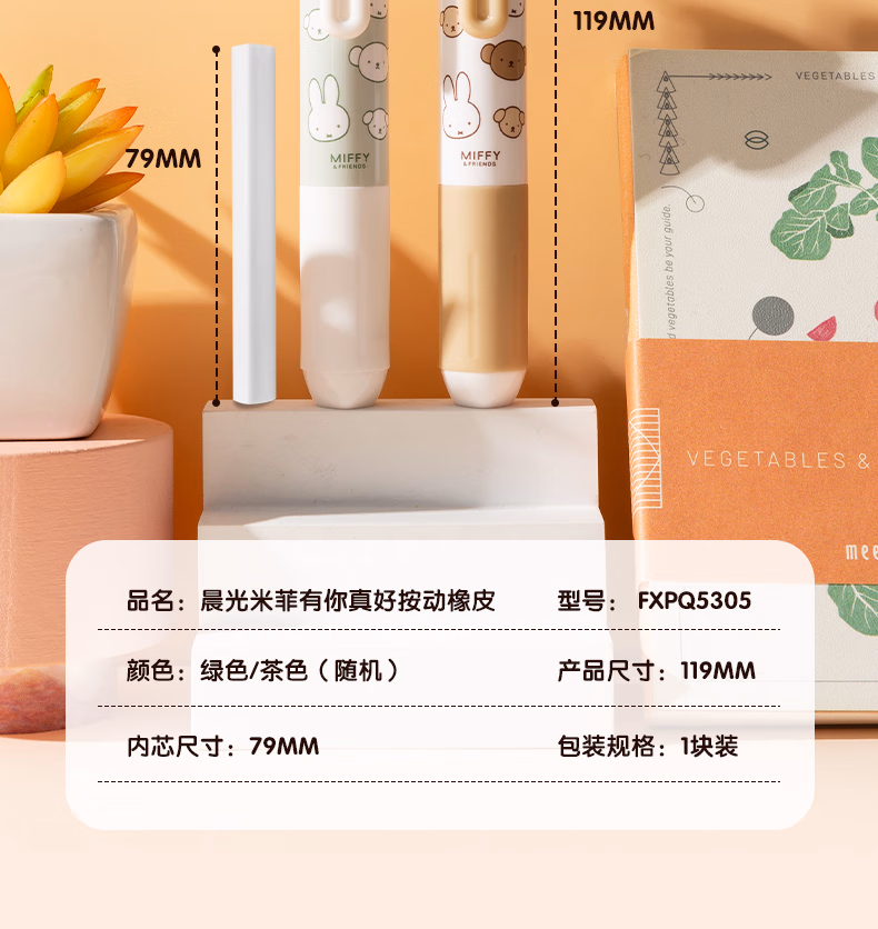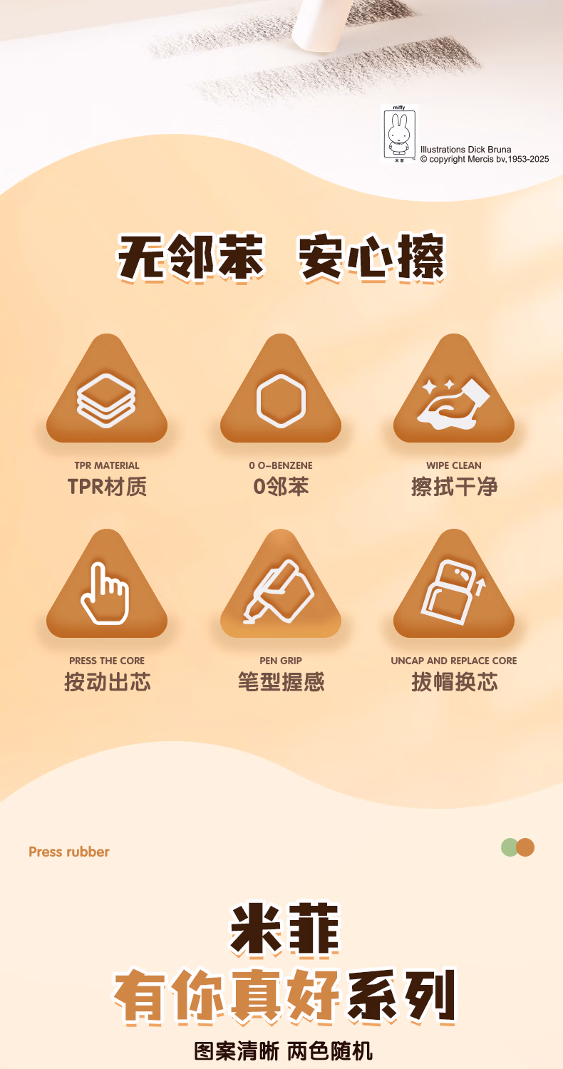 包装清单  :   晨光(M&G)文具学生按动橡皮擦 米菲有你真好不易留痕干净少屑无邻苯按压橡皮 花色随机FXPQ5305