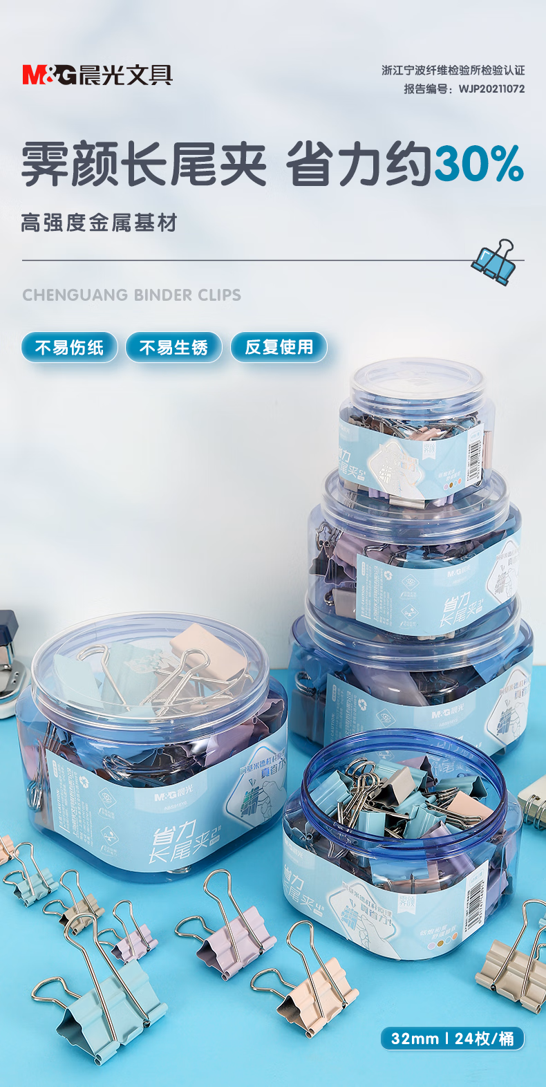 包装清单  :   晨光(M&G)文具48只25mm 省力长尾夹票夹 4#彩色金属燕尾夹 莫兰迪系列票据夹子 办公用品ABS916Y8