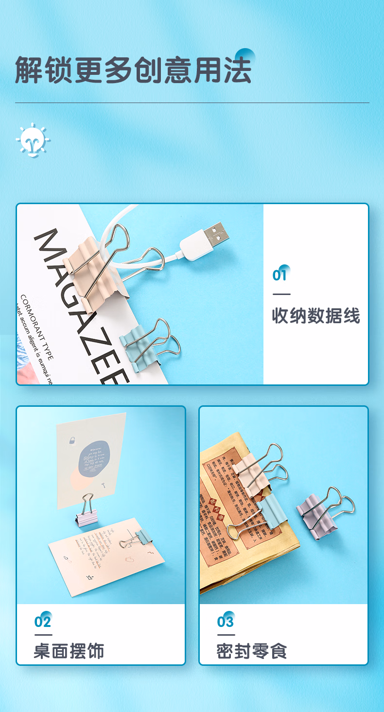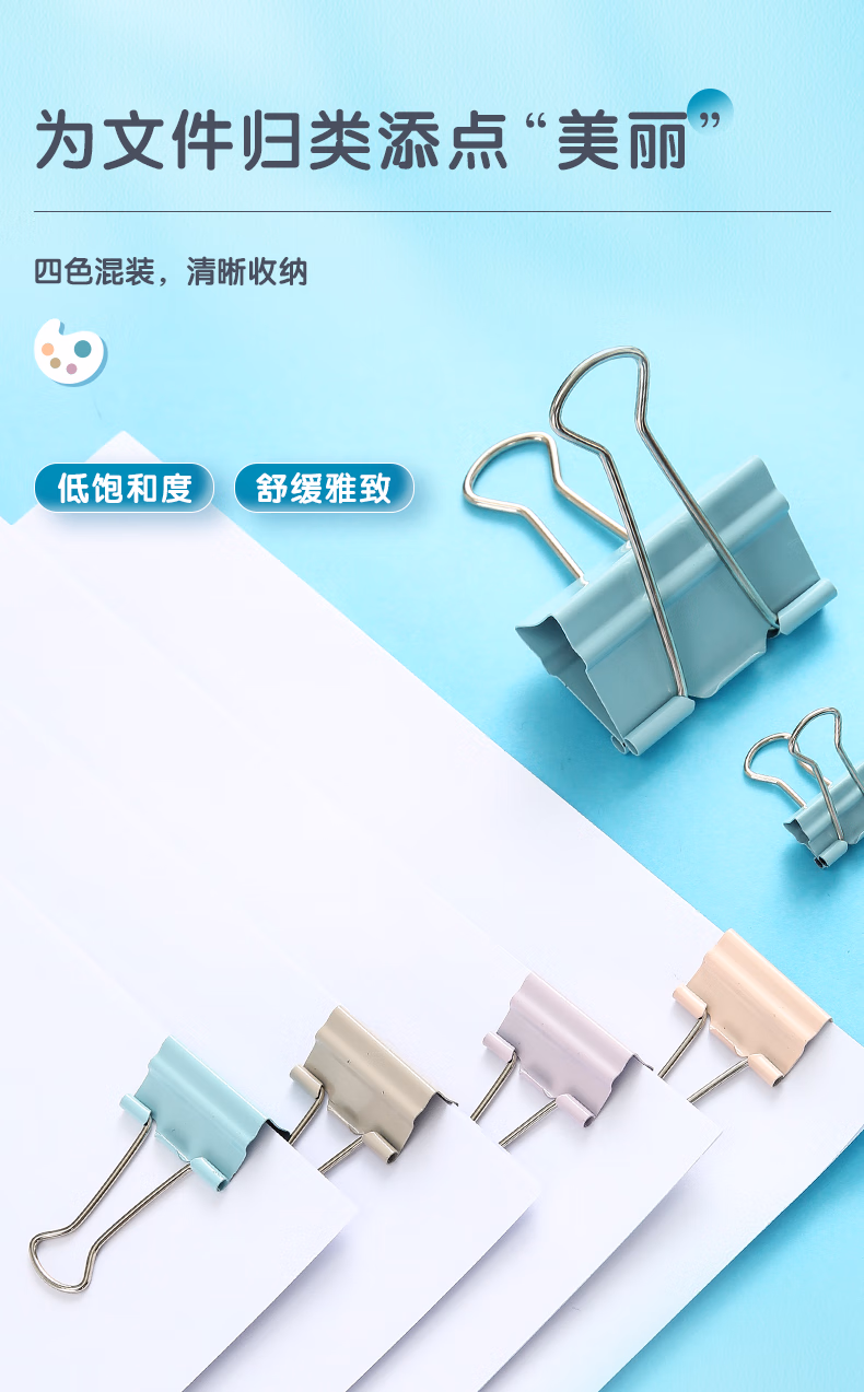 包装清单  :   晨光(M&G)文具24只32mm 省力长尾夹票夹 3#彩色金属燕尾夹 莫兰迪系列票据夹子 办公用品ABS916Y7