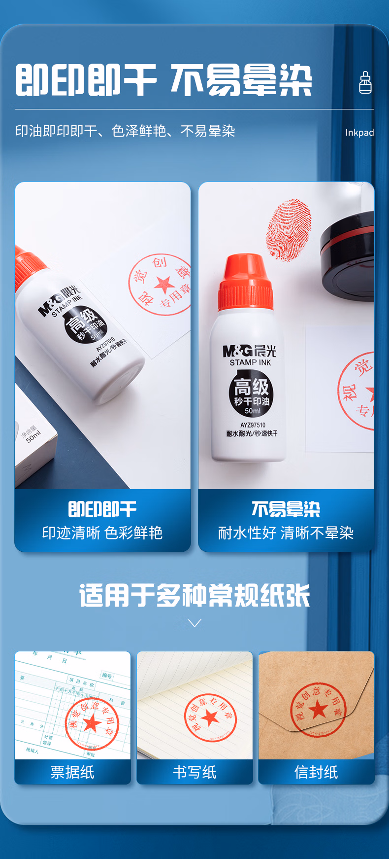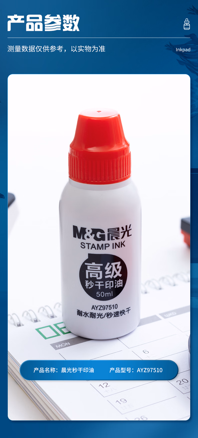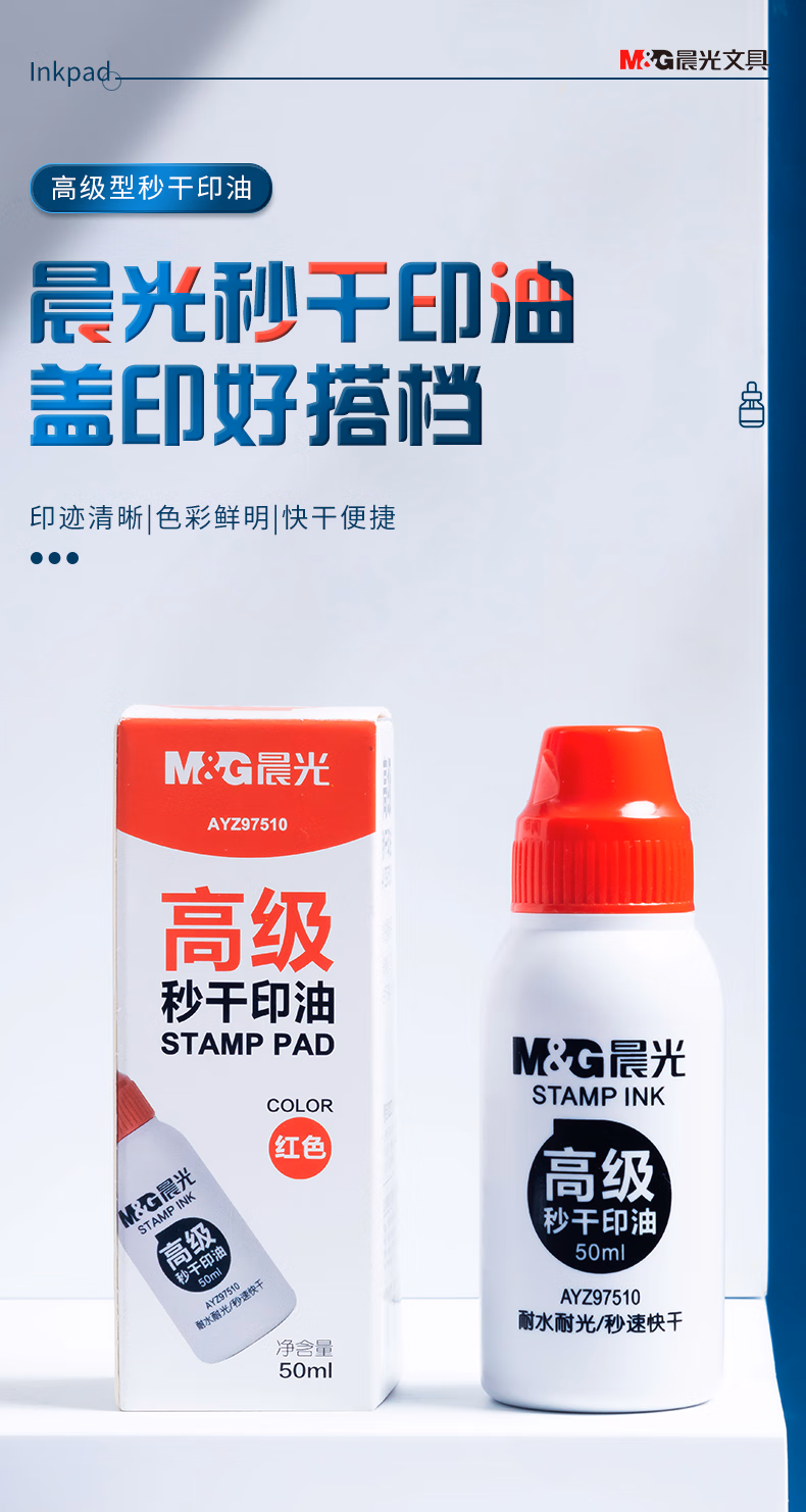 包装清单  :   晨光(M&G)50ml财务秒干印油 办公印章专用 办公用品 红色 单瓶装AYZ97510