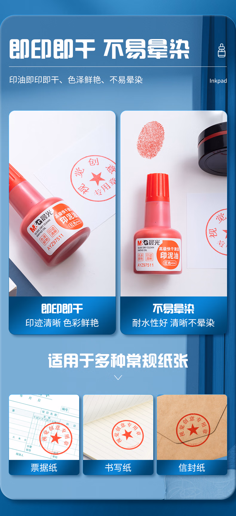 包装清单  :   晨光(M&G)40ml财务印泥快干印章清洁印油 办公用品 红色 单个装AYZ97511