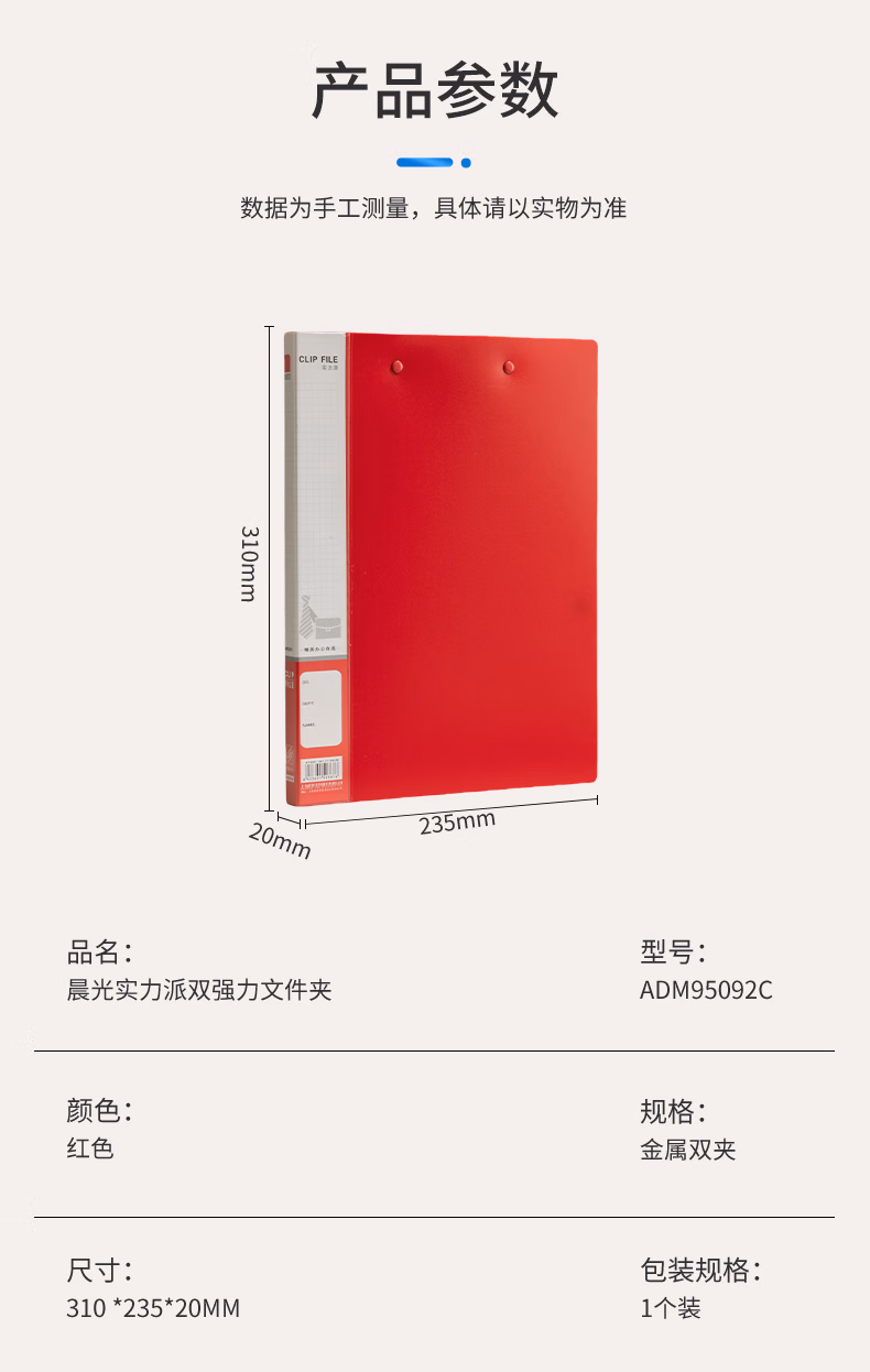 包装清单  :   晨光(M&G)文具 A4/双夹 金属文件夹 资料册夹板 商务签约夹板文件夹红色 办公用品ADM95092C