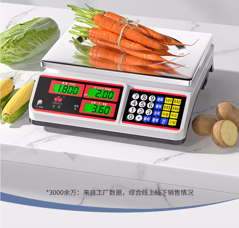 包装清单  :   至尊(ZHIZUN)称卖菜电子秤商用秤做生意用摆摊台秤小型克秤厨房秤高精度30kg电子称卖菜家用食品称重公斤计价秤 【双面液晶大屏】快充电30kg计数计价+价格储存