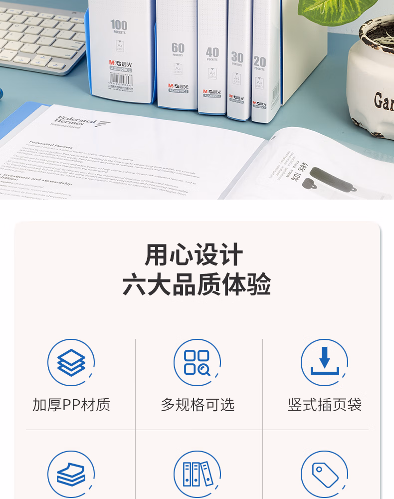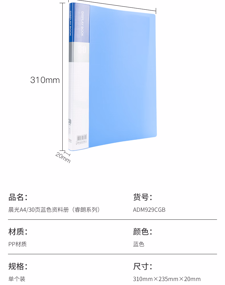 包装清单  :   晨光(M&G)文具A4/30页资料册 文件夹文件册插页袋票据收纳 ADM929CGB