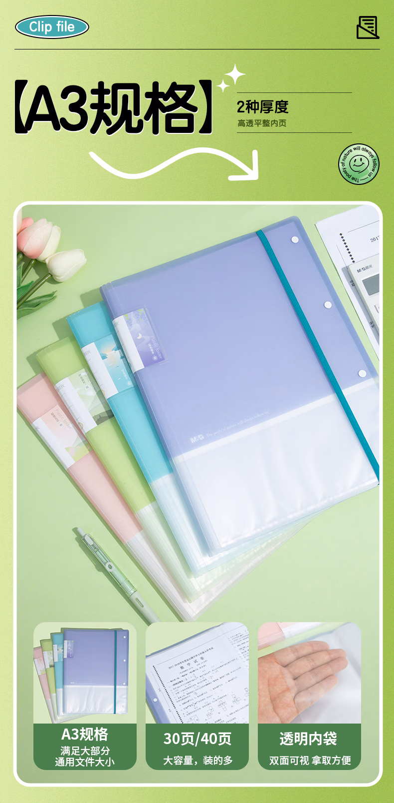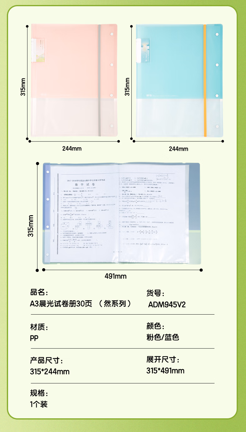 包装清单  :   晨光(M&G)文具A3/30页 资料册试卷收纳袋试卷夹试卷收纳册文件夹产检报告收纳册乐谱夹ADM945V2-F粉色