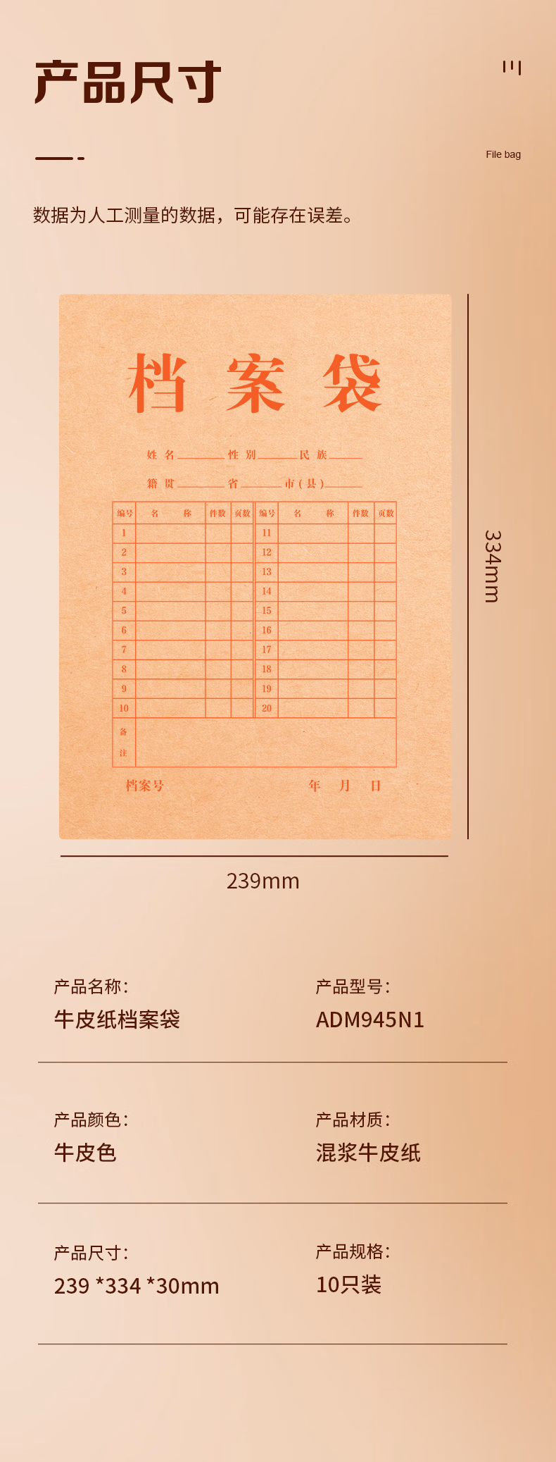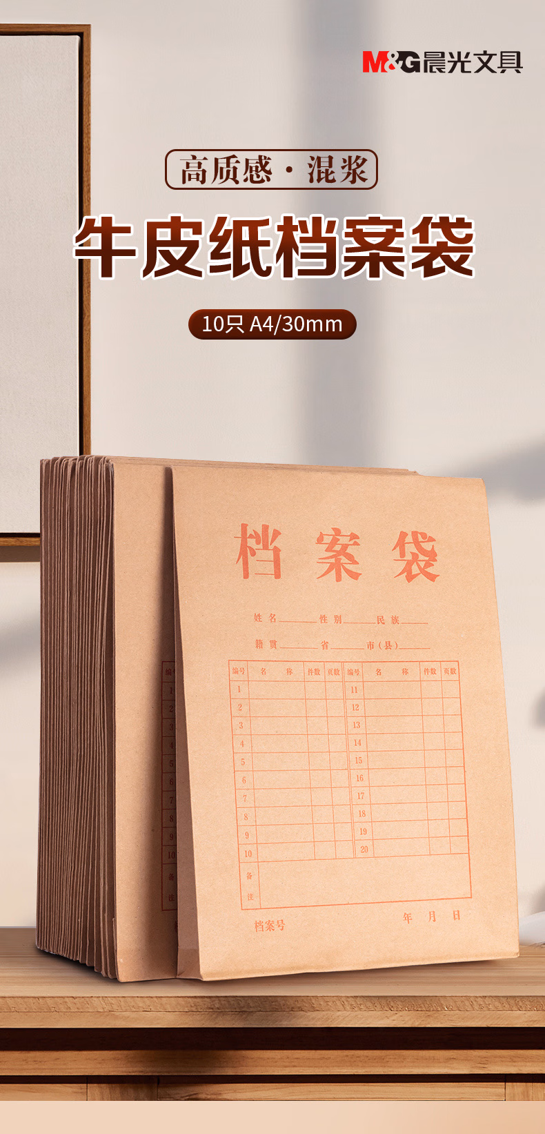 包装清单  :   晨光(M&G)文具10个装A4/3cm侧宽/150g牛皮纸档案袋 大容量文件袋资料袋 标书合同文件整理收纳袋ADM945N1