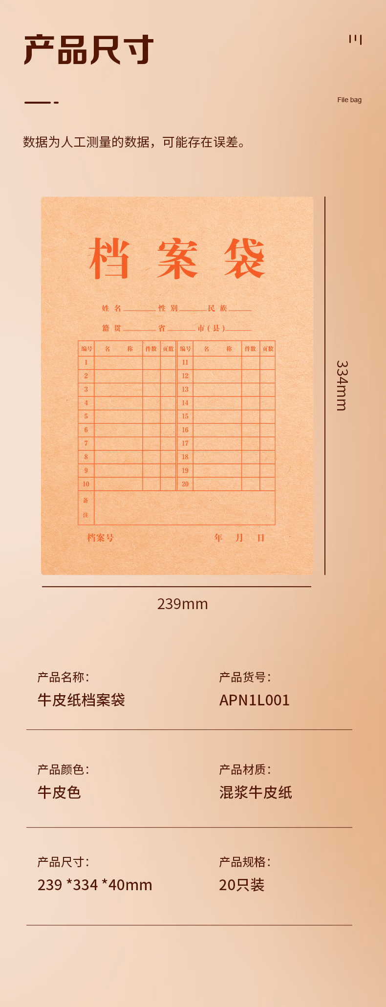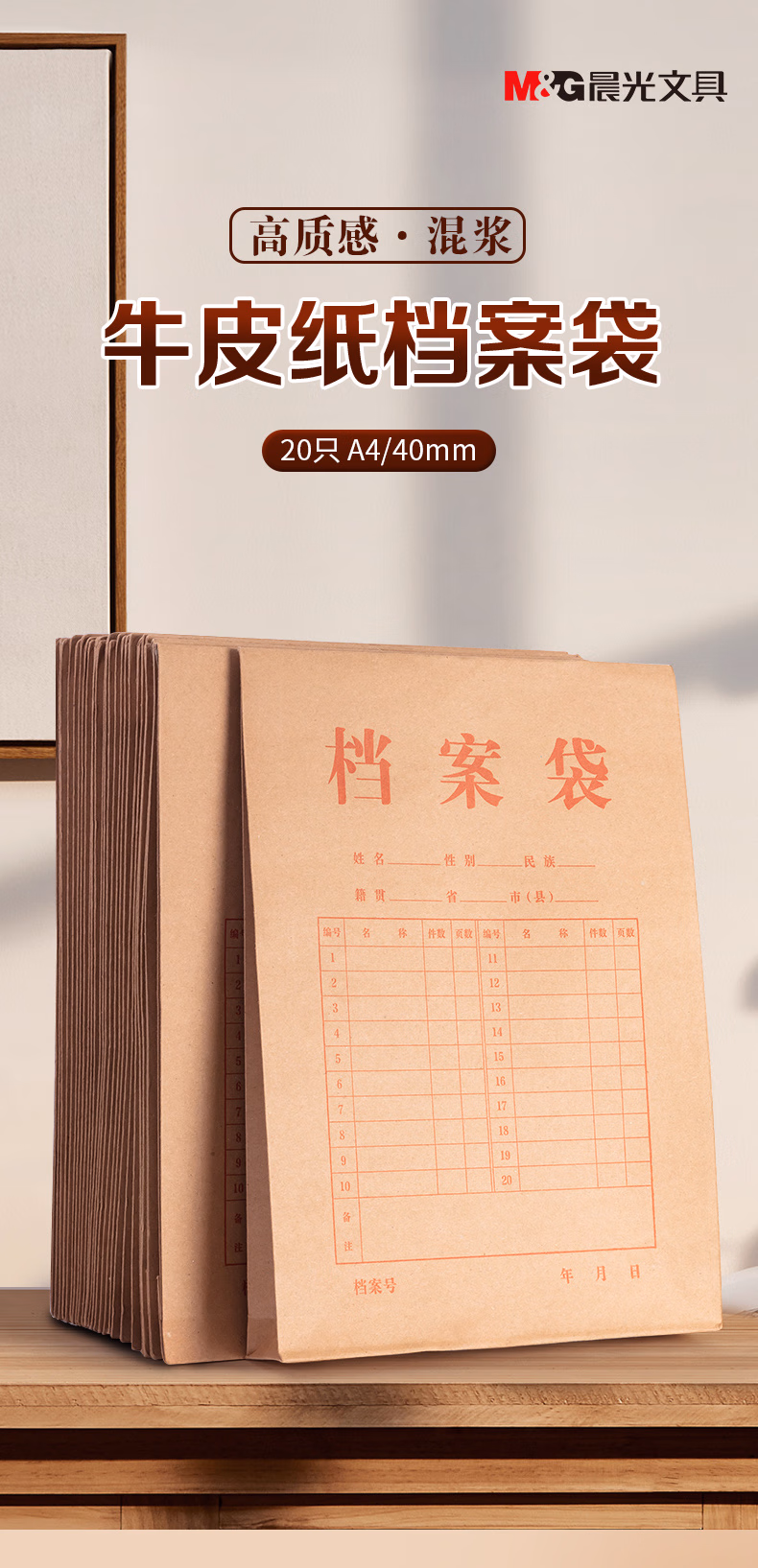 包装清单  :   晨光(M&G)20只A4混浆200g牛皮纸档案袋礼品袋票据收纳侧宽4cm标书合同文件资料袋 办公专用APN1L001