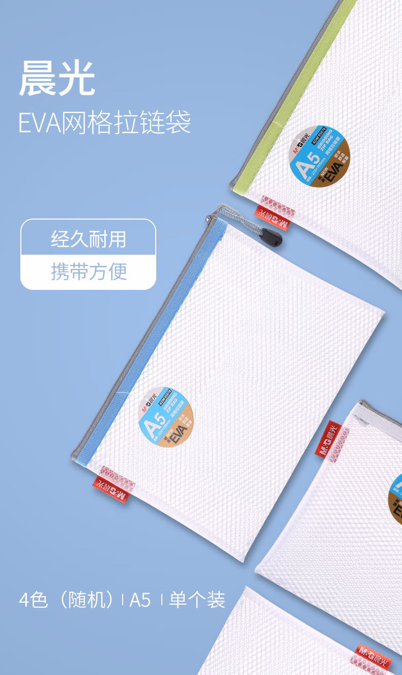 包装清单  :   晨光(M&G)文具 A5/EVA文件袋资料袋 网格拉链袋 办公文件试卷票据整理 考试专用收纳袋 ADM95078