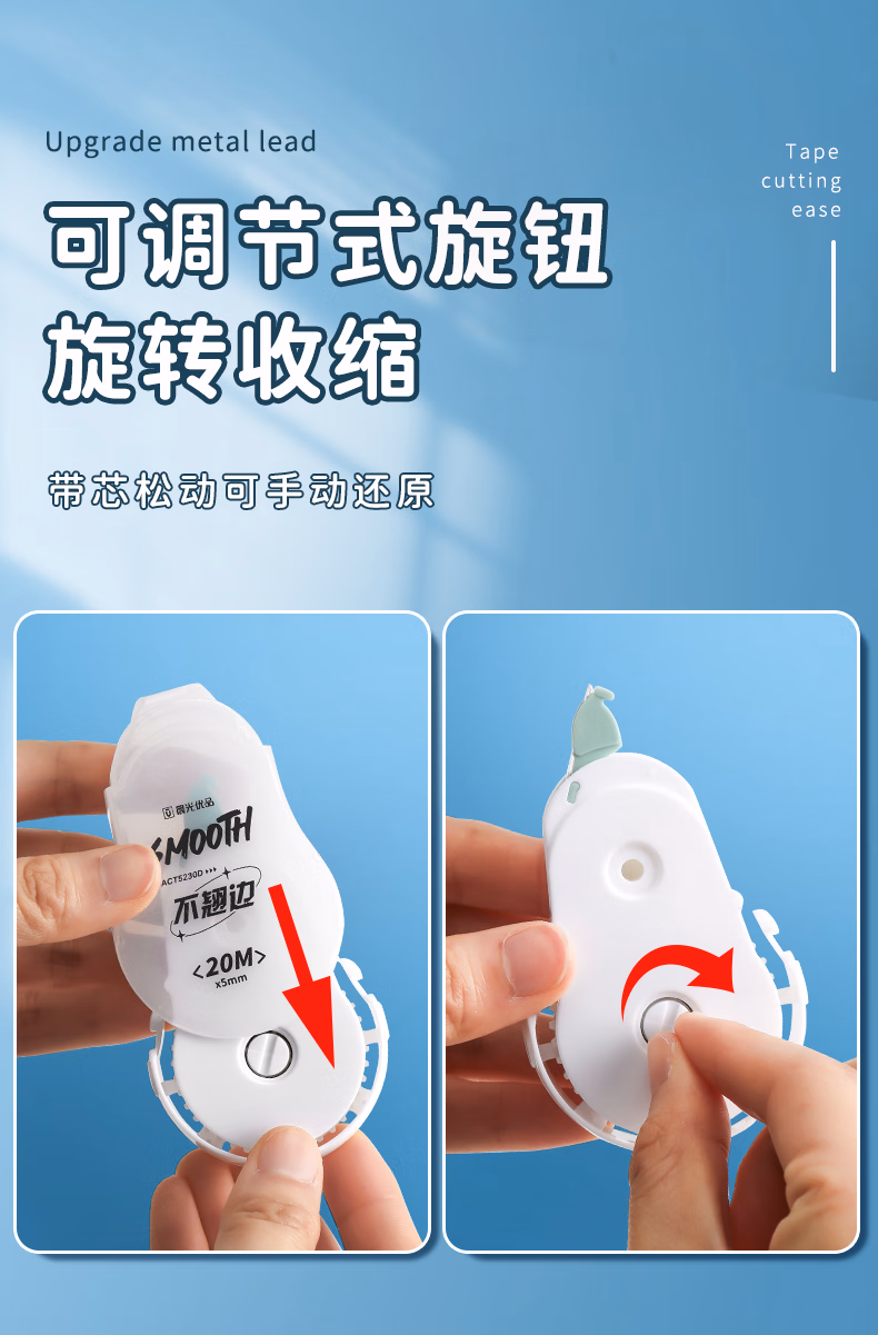 包装清单  :   晨光(M&G)文具优品小熨斗不翘边静音修正带80m 小学初中大容量顺滑平整隐形改正带 20米*4支装ACT5230D