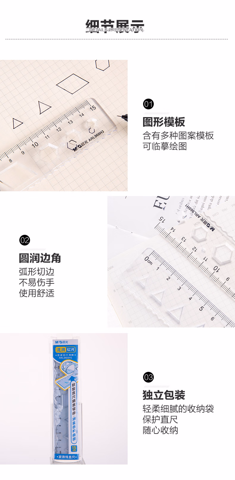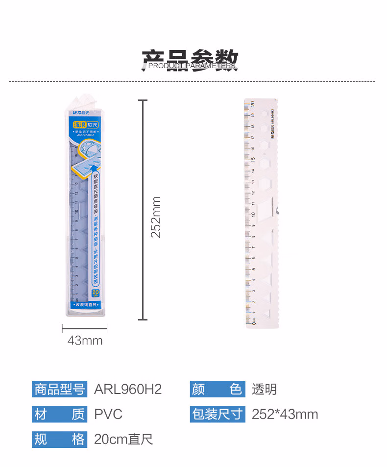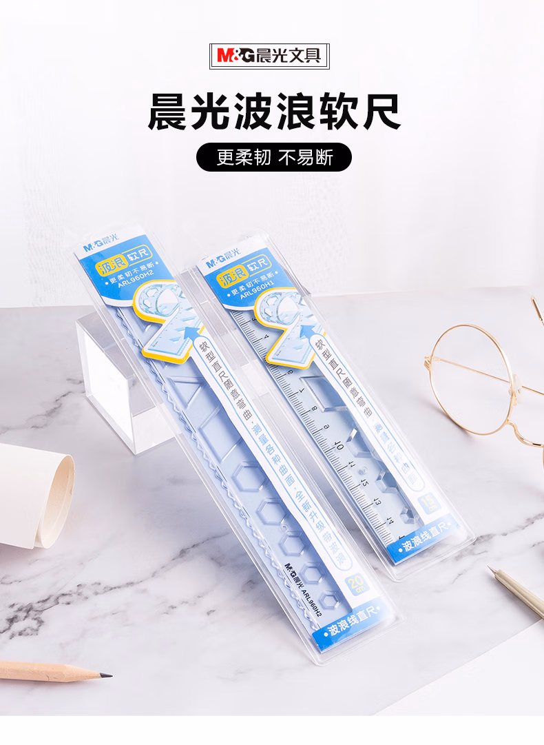 包装清单  :   晨光(M&G)文具波浪软尺子小学生直尺20cm文具考试专用 韧性好不易折断ARL960H2