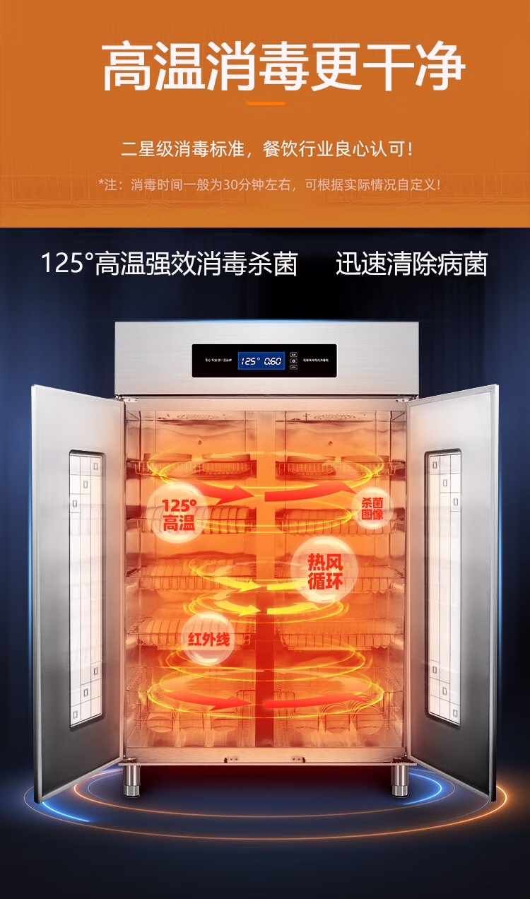 包装清单  :   丰智达消毒柜商用餐饮饭店食堂大型二星级立式双门消毒碗柜高温大容量不锈钢热风循环单门碗筷餐具保洁柜 消毒70公分汤桶消毒柜