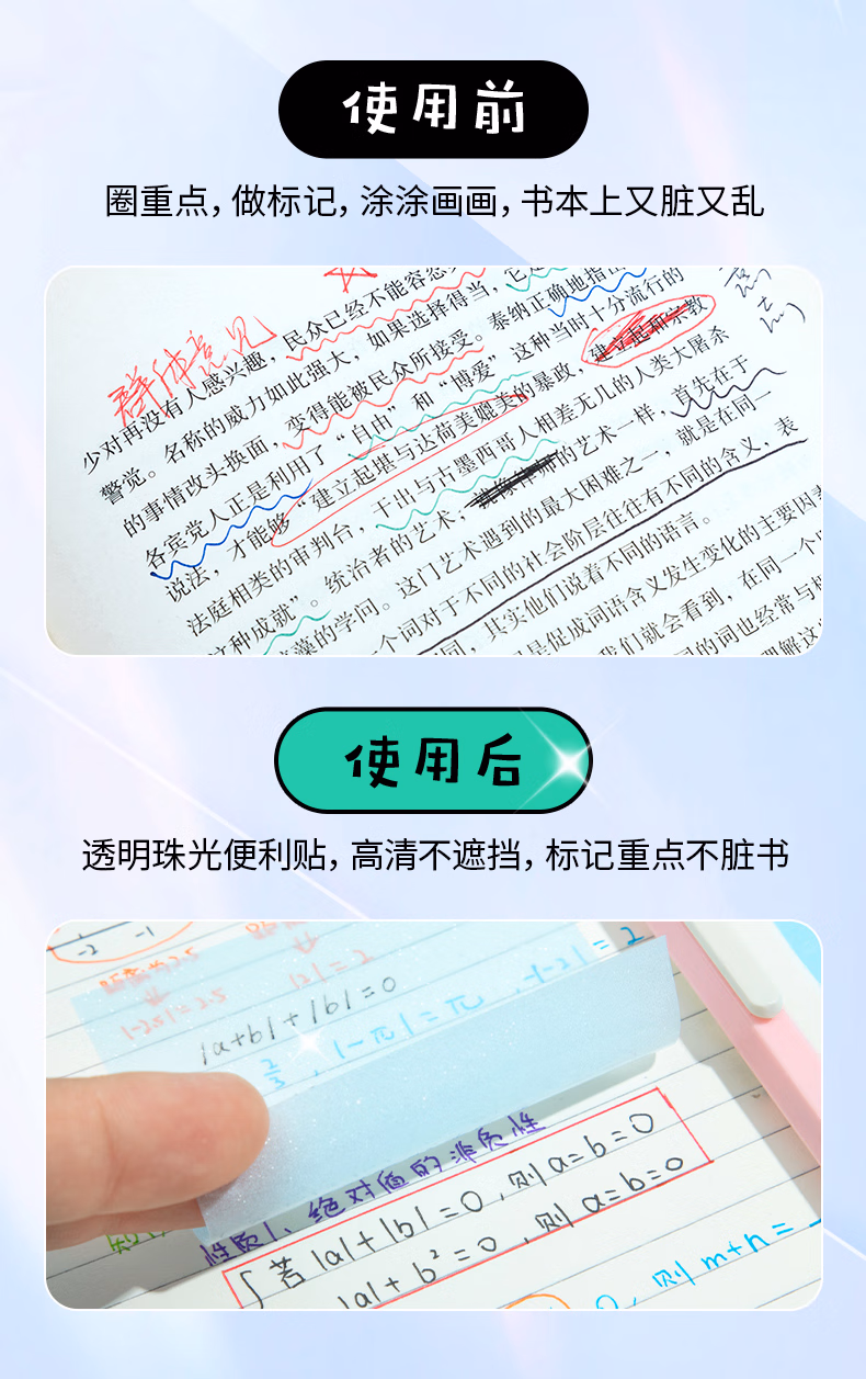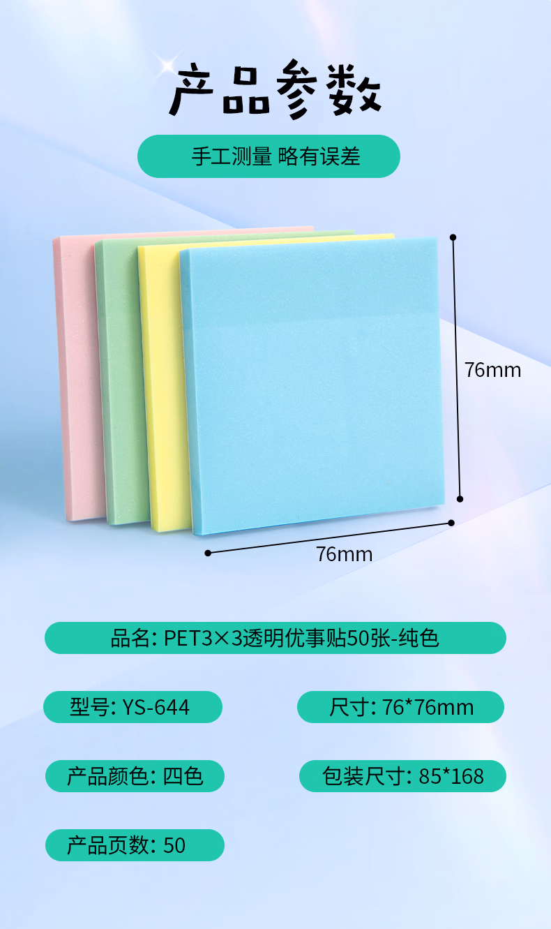 包装清单  :   晨光(M&G)文具透明便利贴标签贴粘性强学生笔记便签贴纸便签本速干可写字76*76mm1本随机YS-644