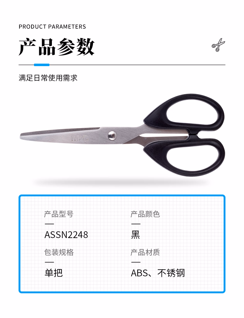 包装清单  :   晨光(M&G)文具热门商品160mm办公家用生活剪刀 手工剪纸刀 办公用品 黑色单把装ASSN2248