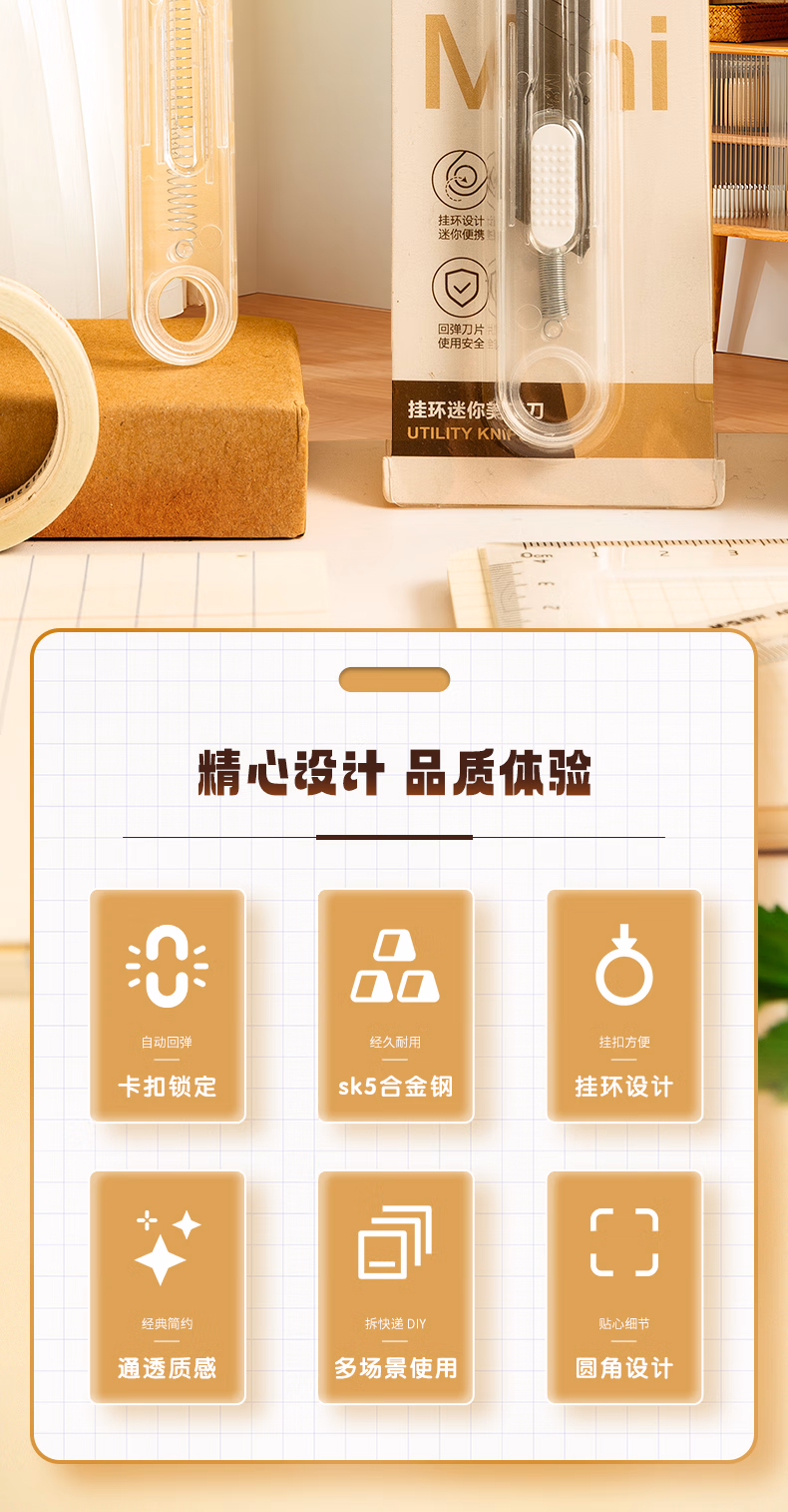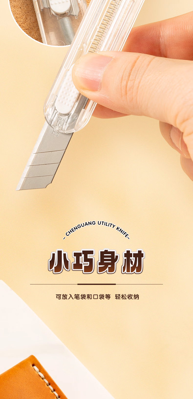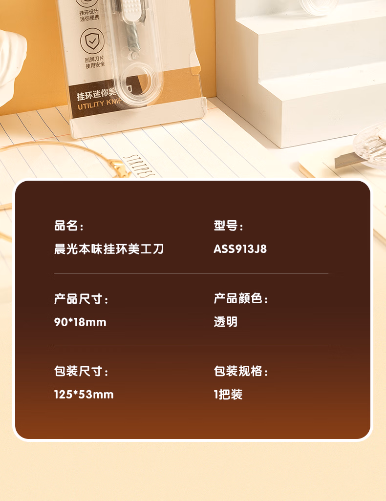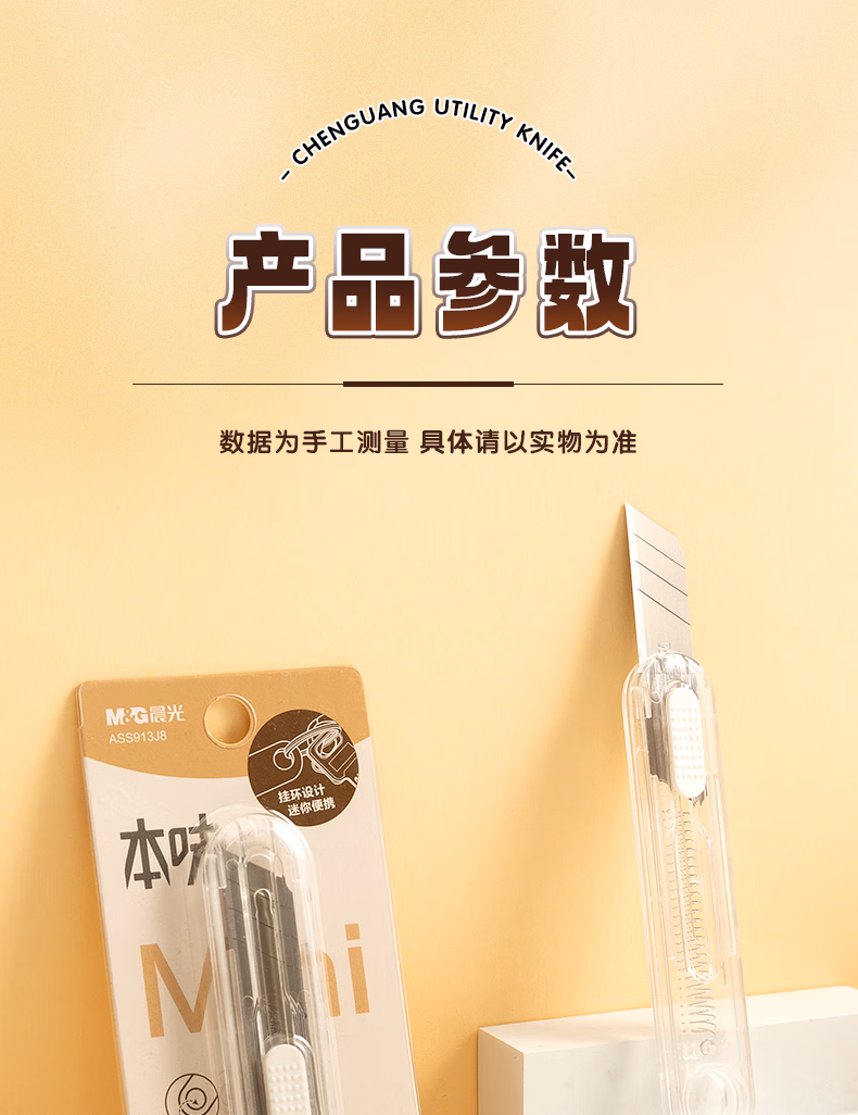 包装清单  :   晨光(M&G)文具本味挂环随身美工刀 便携拆快递小刀 开箱神器裁纸刀 单把装 ASS913J8