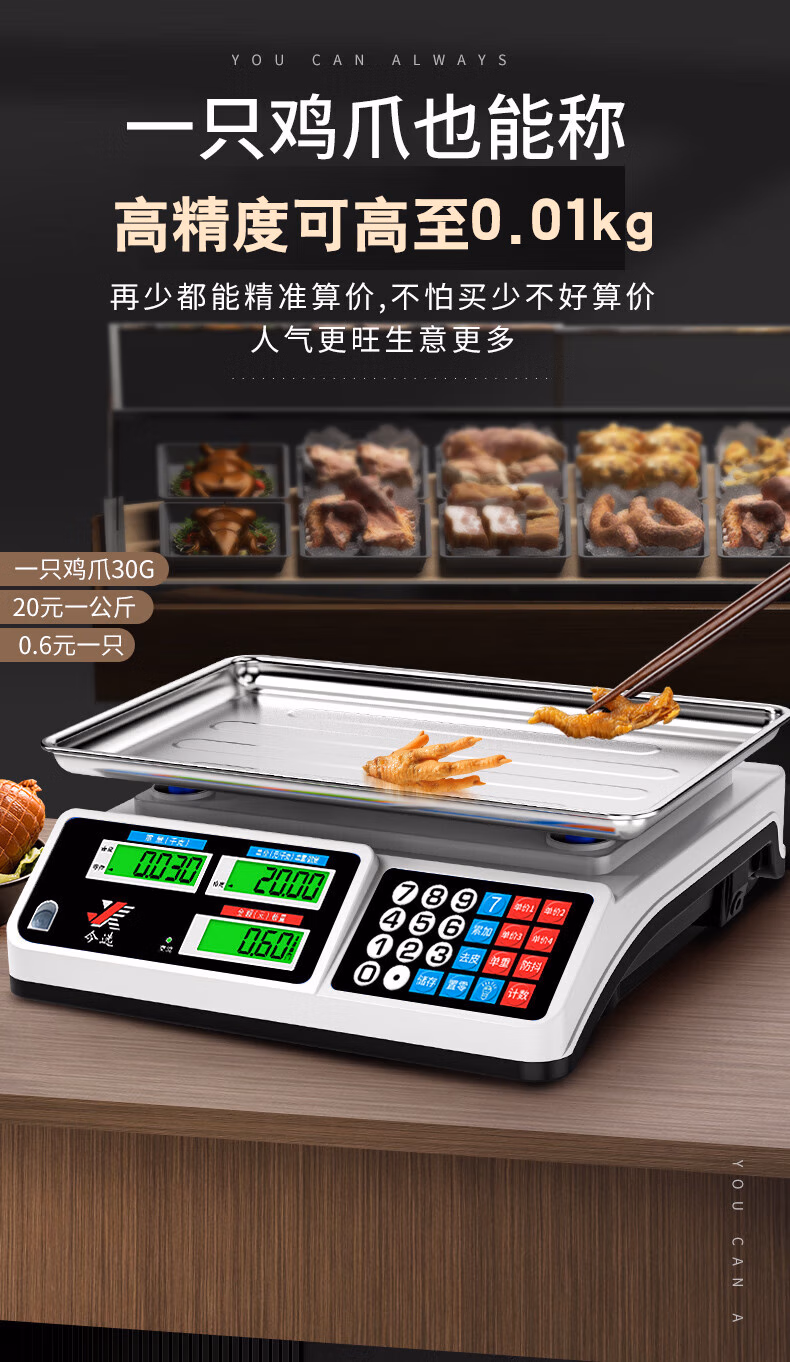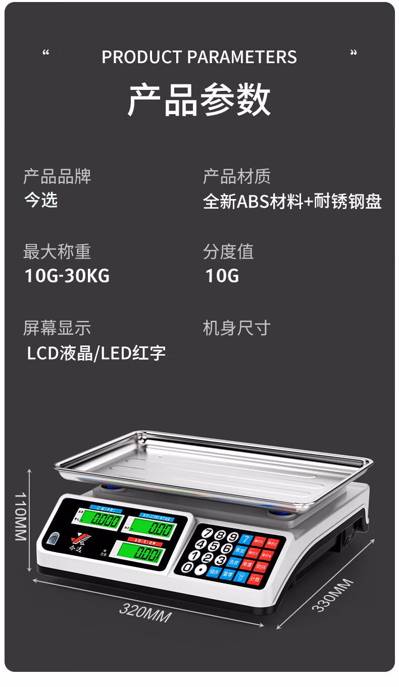 包装清单  :   今选(jinxuan)称卖菜电子秤商用摆摊台秤小型计价食物品厨房秤高精度电子称超市